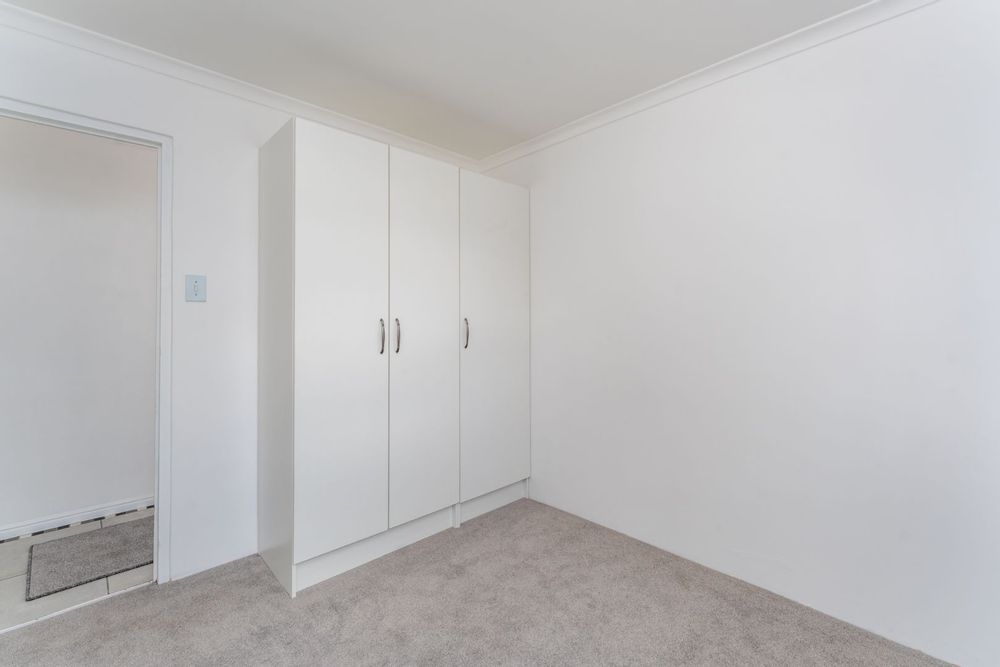 Sunny 2nd bedroom also boasts new carpeting and cupboards.