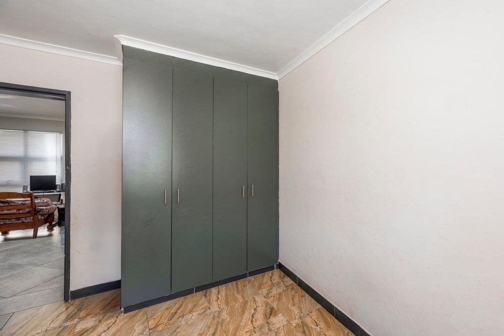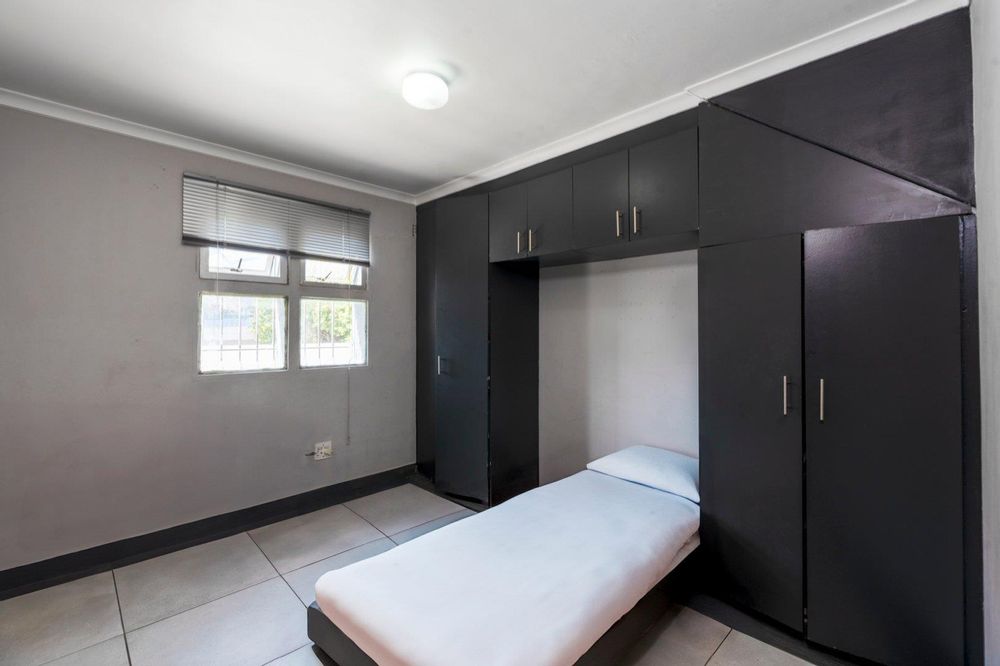Large Main bedroom with built-in cupboards that are conveniently built to accommodate your bed in between the cupboards.