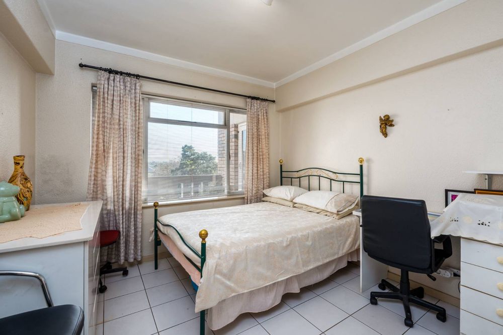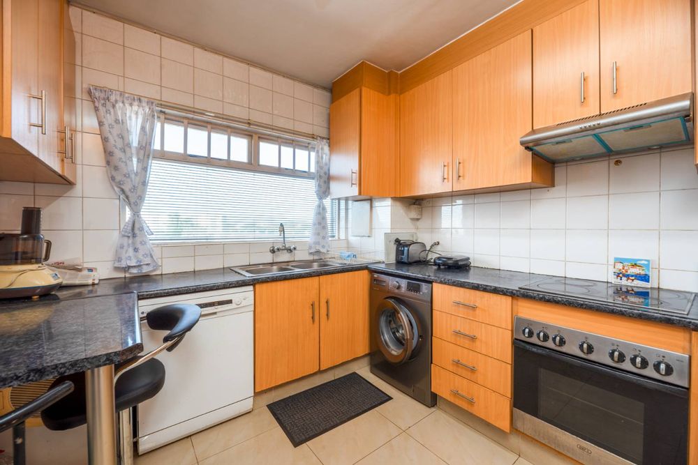 Neat well appointed flat with tiled open plan lounge/dining area. Access to a north facing balcony from both the lounge and bedroom. Three spacious bedrooms with generous built in cupboards. Well equipped kitchen plumbed for dishwasher, washing machine and space for a tumble dryer. Sufficient size opening for a double door fridge/freezer. An under counter oven with a glass top hob and extractor fan. Additional study for work from home situation. Large ground for children to play in. Stunning mountain views. One parking bay and ample unreserved off street parking.