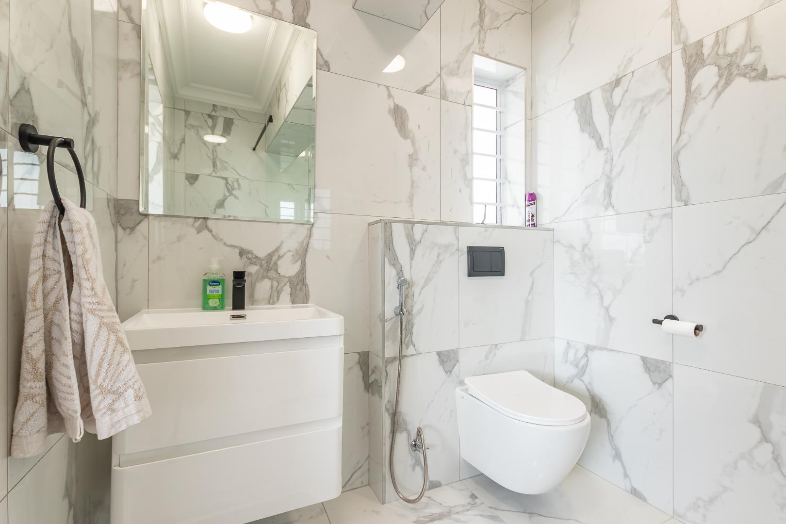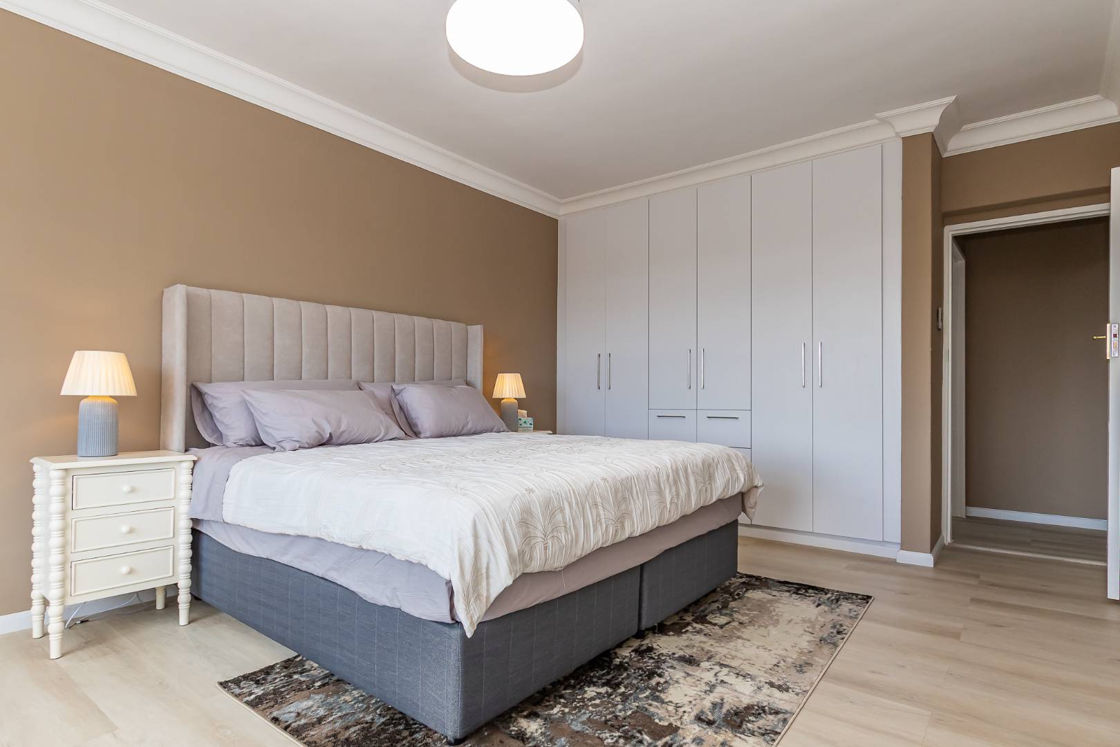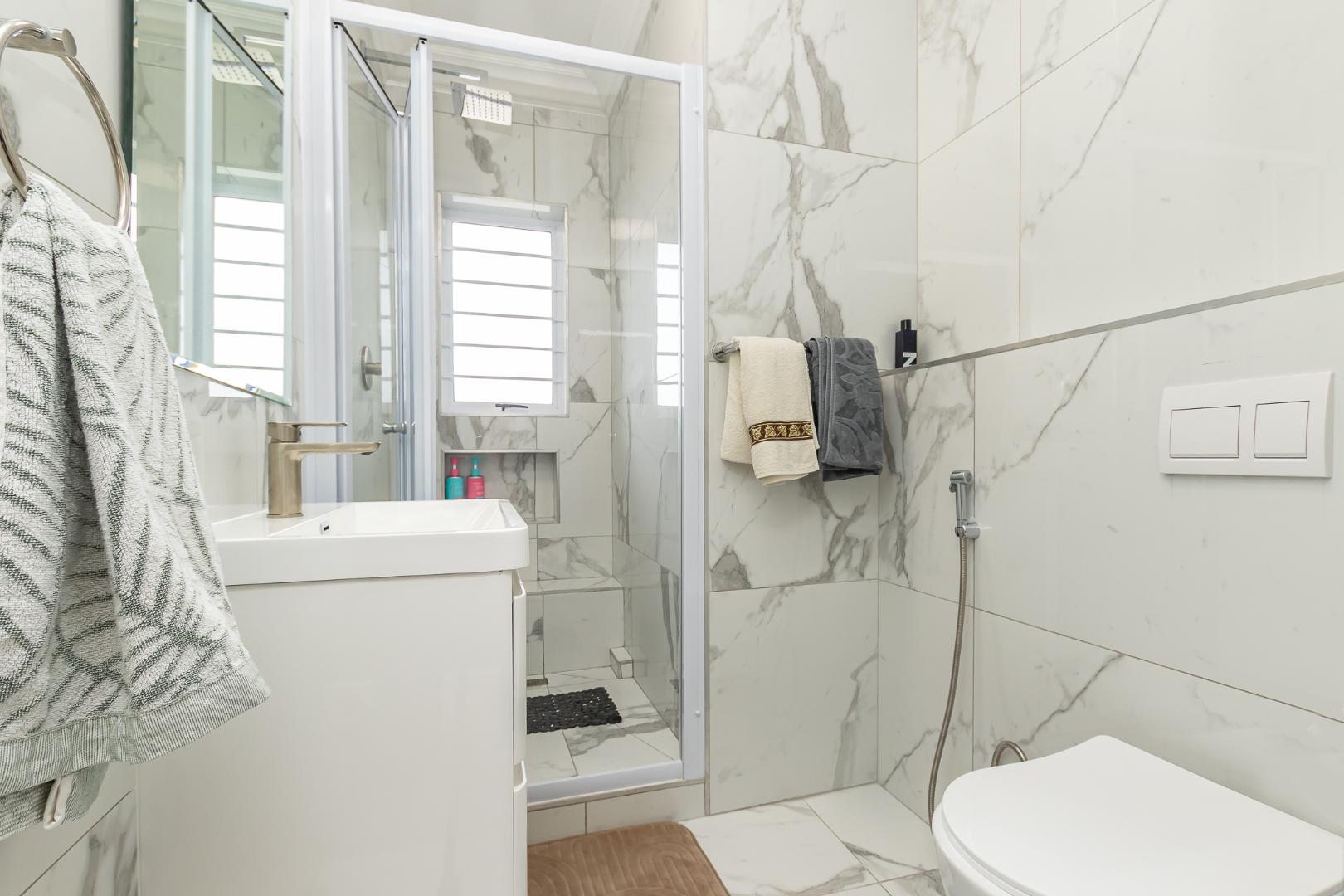 All three bedrooms offer an abundance of built-in-cupboards, while the two tastefully designed bathrooms combine clean lines with refined simplicity.