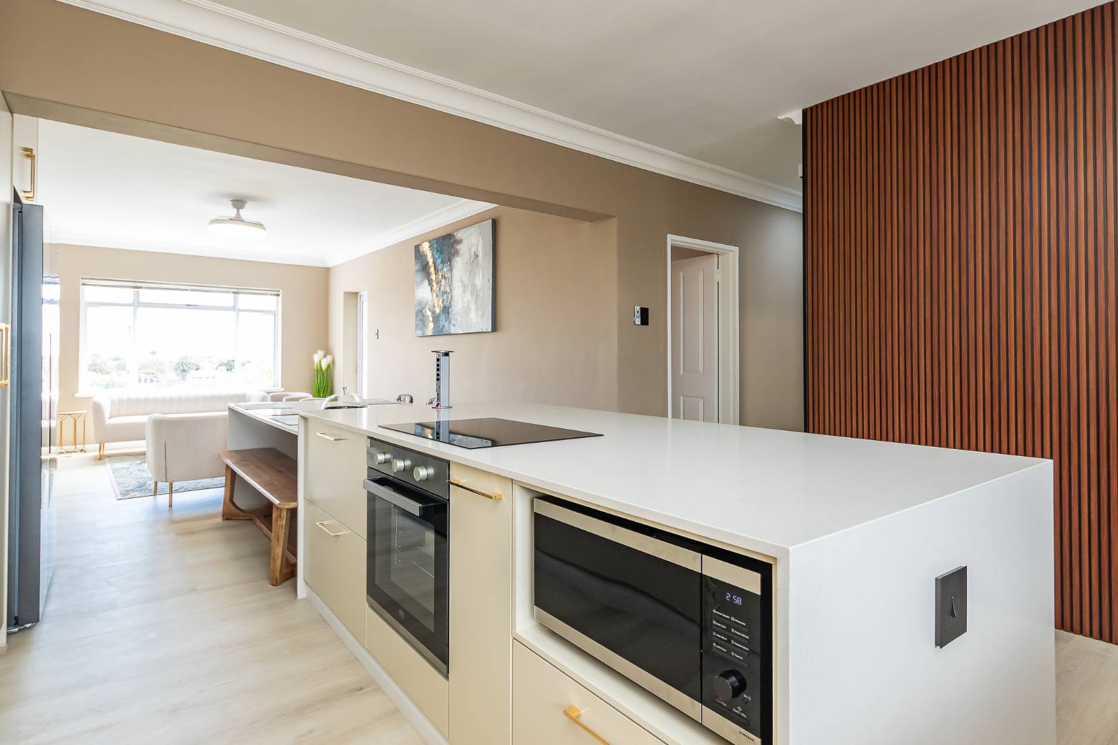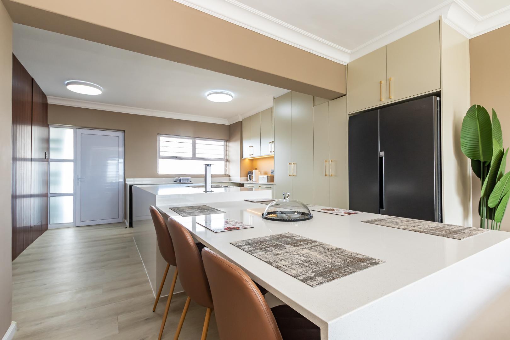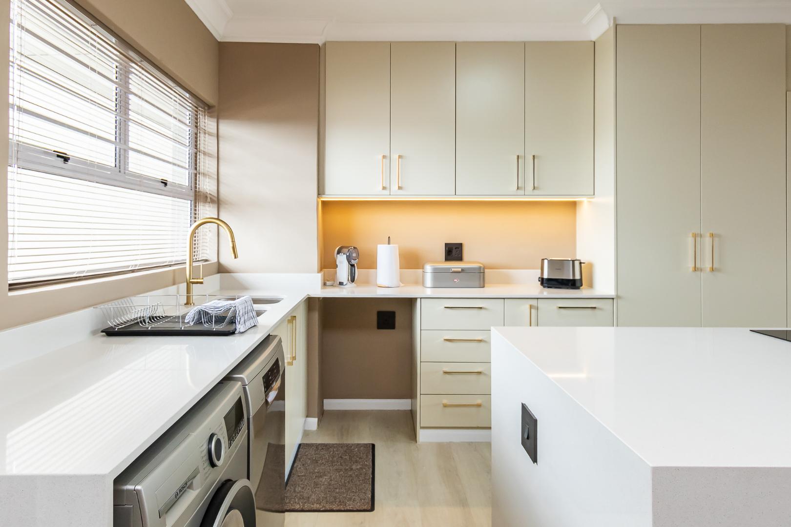 This sleek, modern kitchen premium appliances and quality finishes, perfectly complementing the elegant, fully furnished interior finished in sophisticated luxury decor.