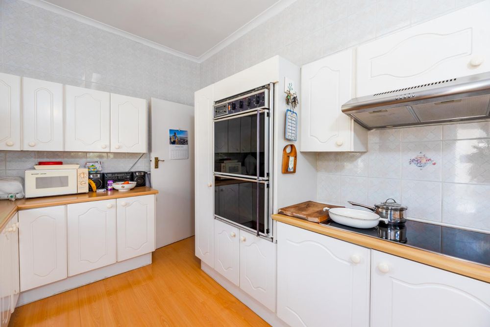 The compact kitchen is thoughtfully designed with an eye-level oven and hob, and is plumbed for one appliance, making it both functional and efficient.