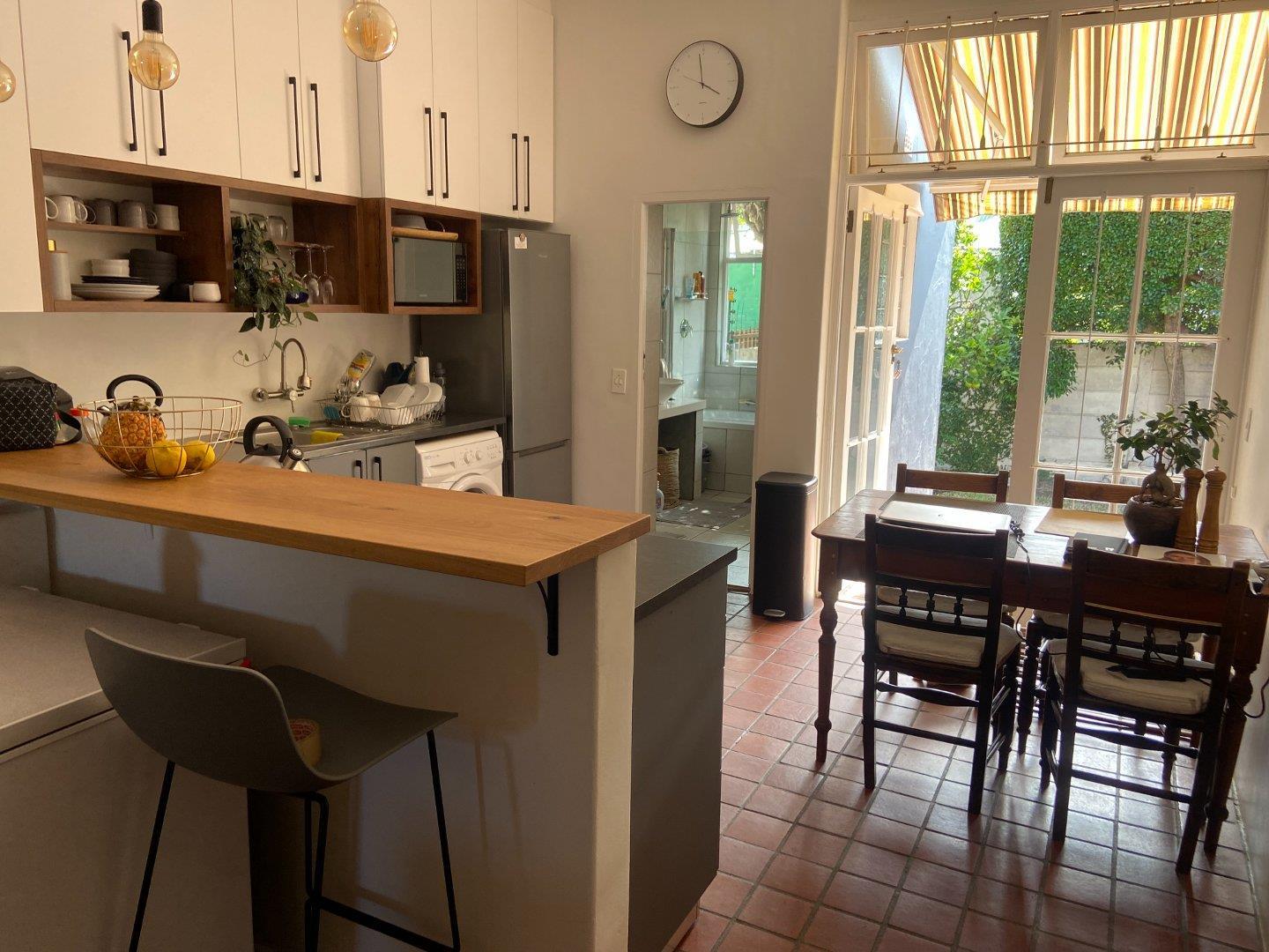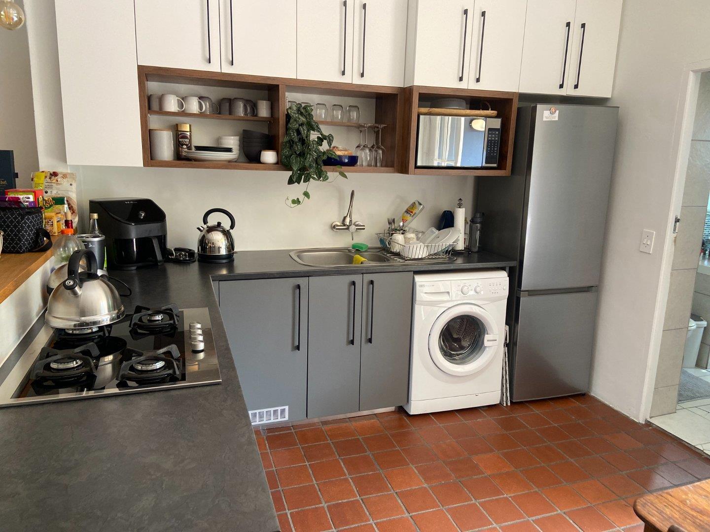 Open plan kitchen into lounge and dining area glass doors leading into an enclosed secure garden. Kitchen has gas hob and electric oven plumed for washing machine.