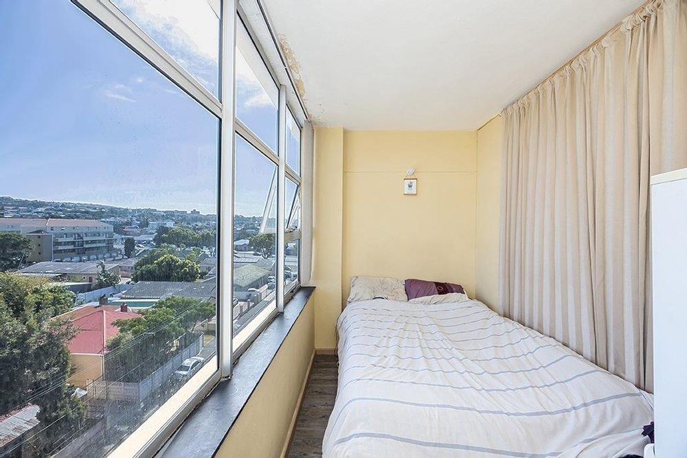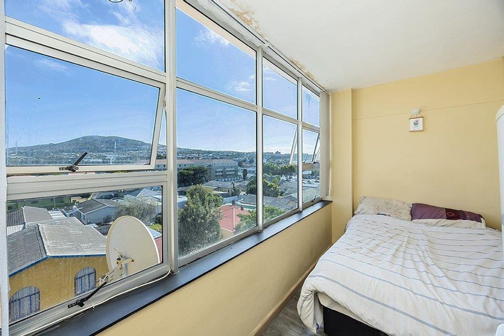 The unit features a spacious bedroom with a kitchen fitted with built-in cupboards. The second bedroom is a converted space, making it ideal for extra accommodation or a home office.
