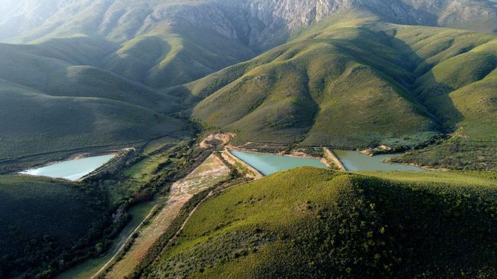 Secluded Karoo oasis in a green Swartberg valley, ideal for tourism or farming — off-grid solar, lucrative 7-chalet lodge, water rights and trails across 300ha.