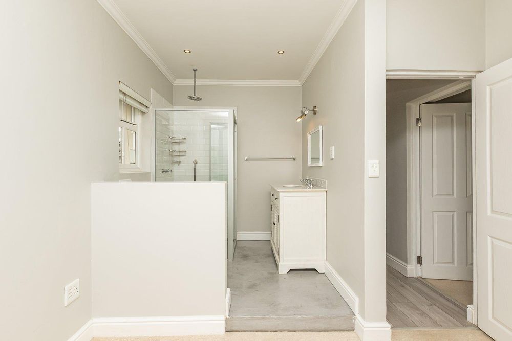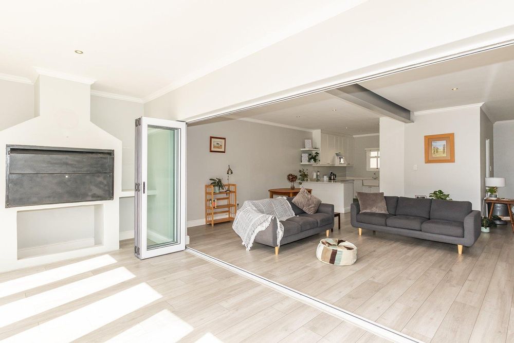 The home features 3 bedrooms, as well as 3 bathrooms, all being en suite. The bedrooms are situated upstairs of the unit. The main bedroom has stacking doors leading out onto a large balcony with beautiful mountain and sea views. The living area is situated on the main level of the property which has an enclosed built-in braai area for entertainment and an open plan living area, lounge, dining room, and kitchen with stylish finishes and space for 2 appliances. In addition, there is a separate guest bathroom and a sizable garden with direct access to the road. A storeroom as well as a Jojo tank. Double automated garage and extra parking. The sectional title has automated gates and only consists of 2 units.