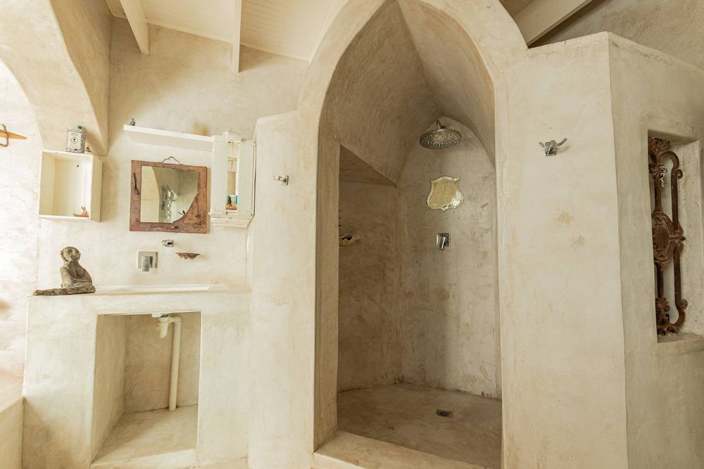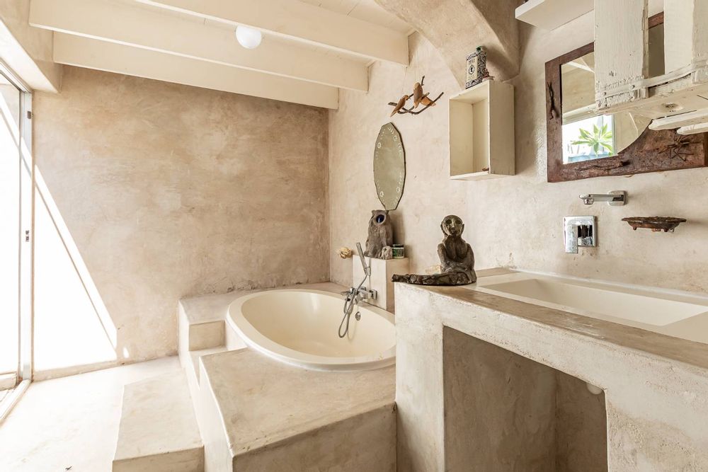 The family bathroom is a luxurious retreat featuring a sizable walk-in shower, heated towel rails, a large oval bath, and a basin. For an added touch of indulgence, enjoy the privacy of an outdoor shower, offering a serene, spa-like experience.