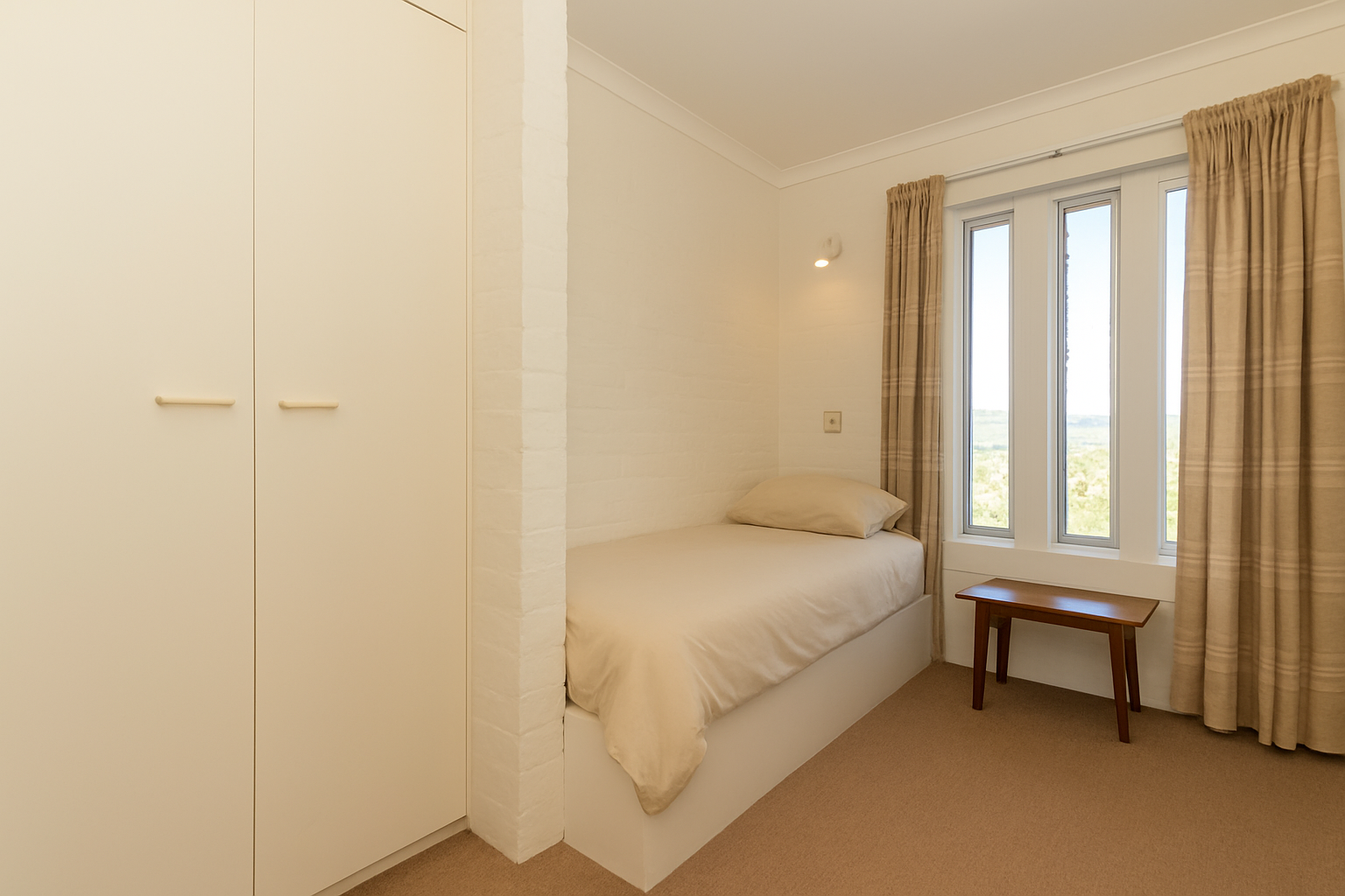 It has a well appointed kitchen and separate dining area which looks into the lush green nursery, being perfect for blending practicality with family gatherings and comfort. While generous windows frame sweeping mountain views that bring the outdoors in, seemingly connecting indoors with the beauty of the coast.