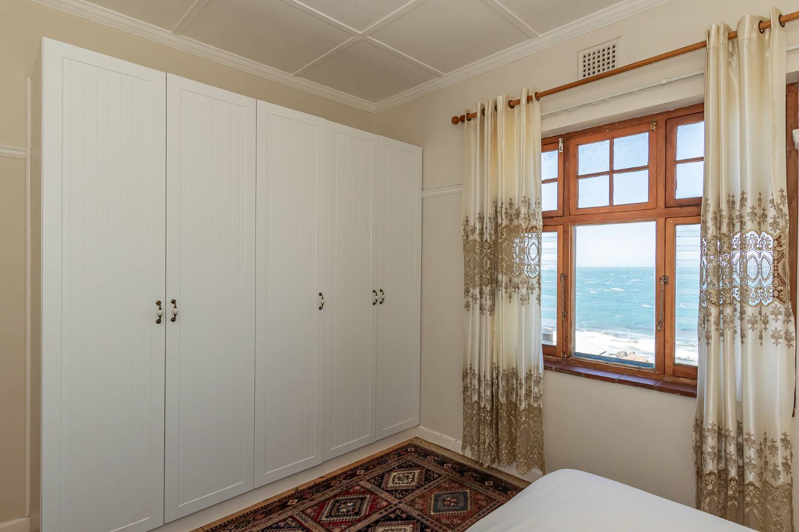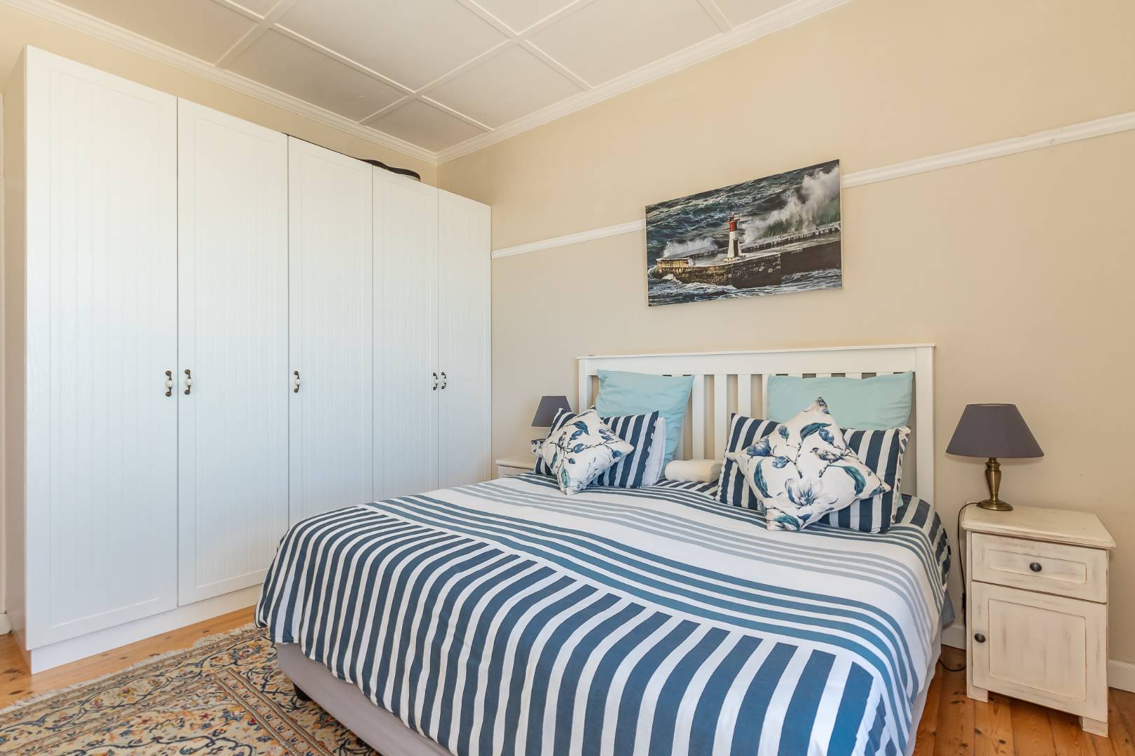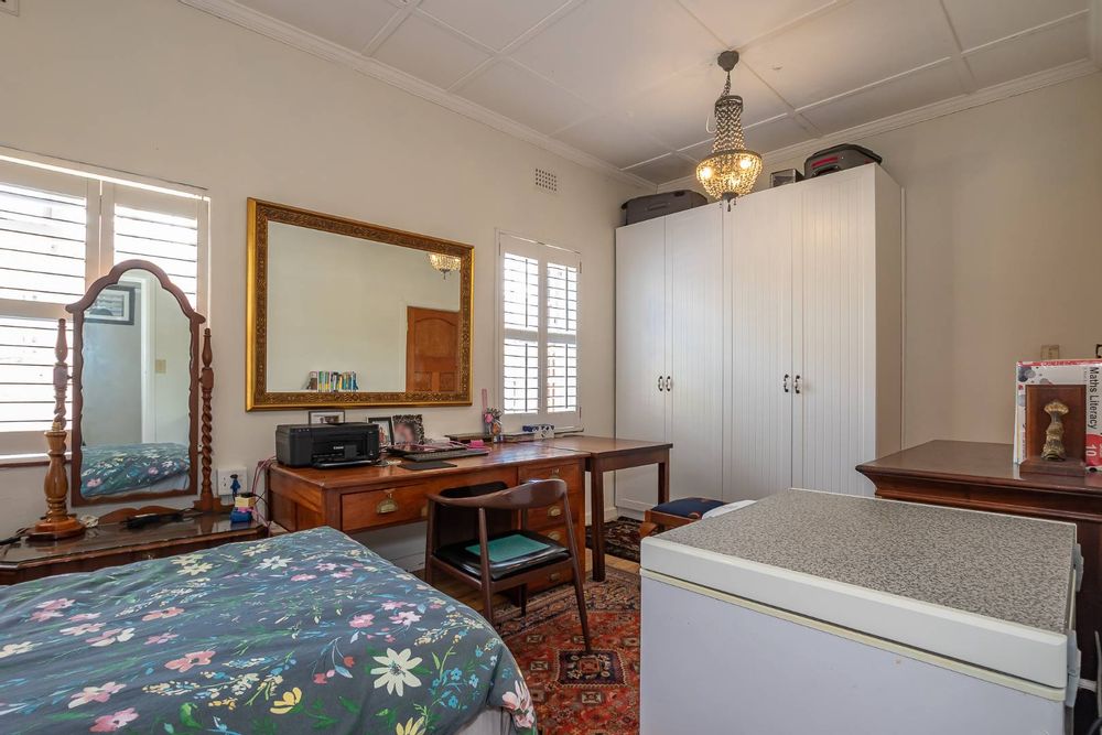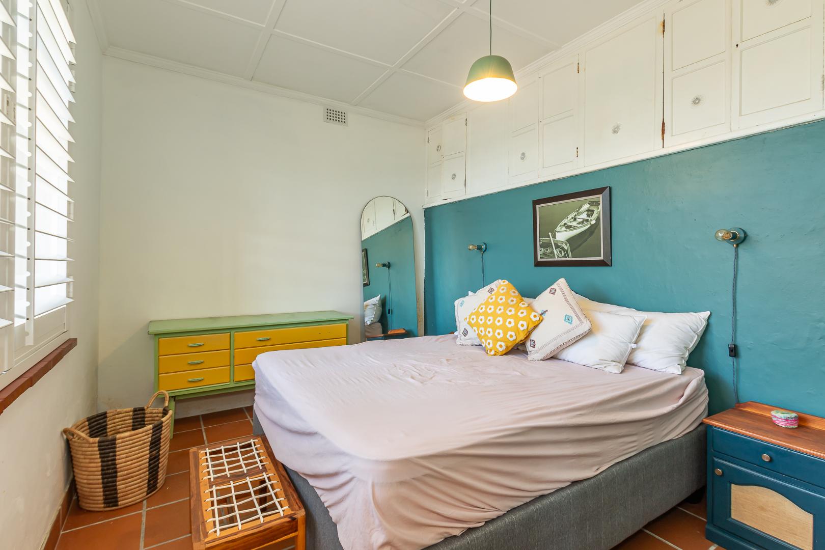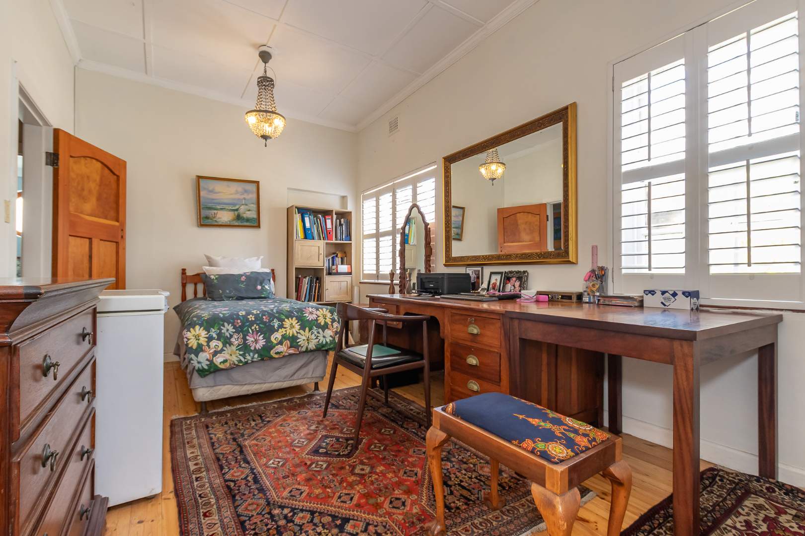 Bedroom with free standing wardrobe.