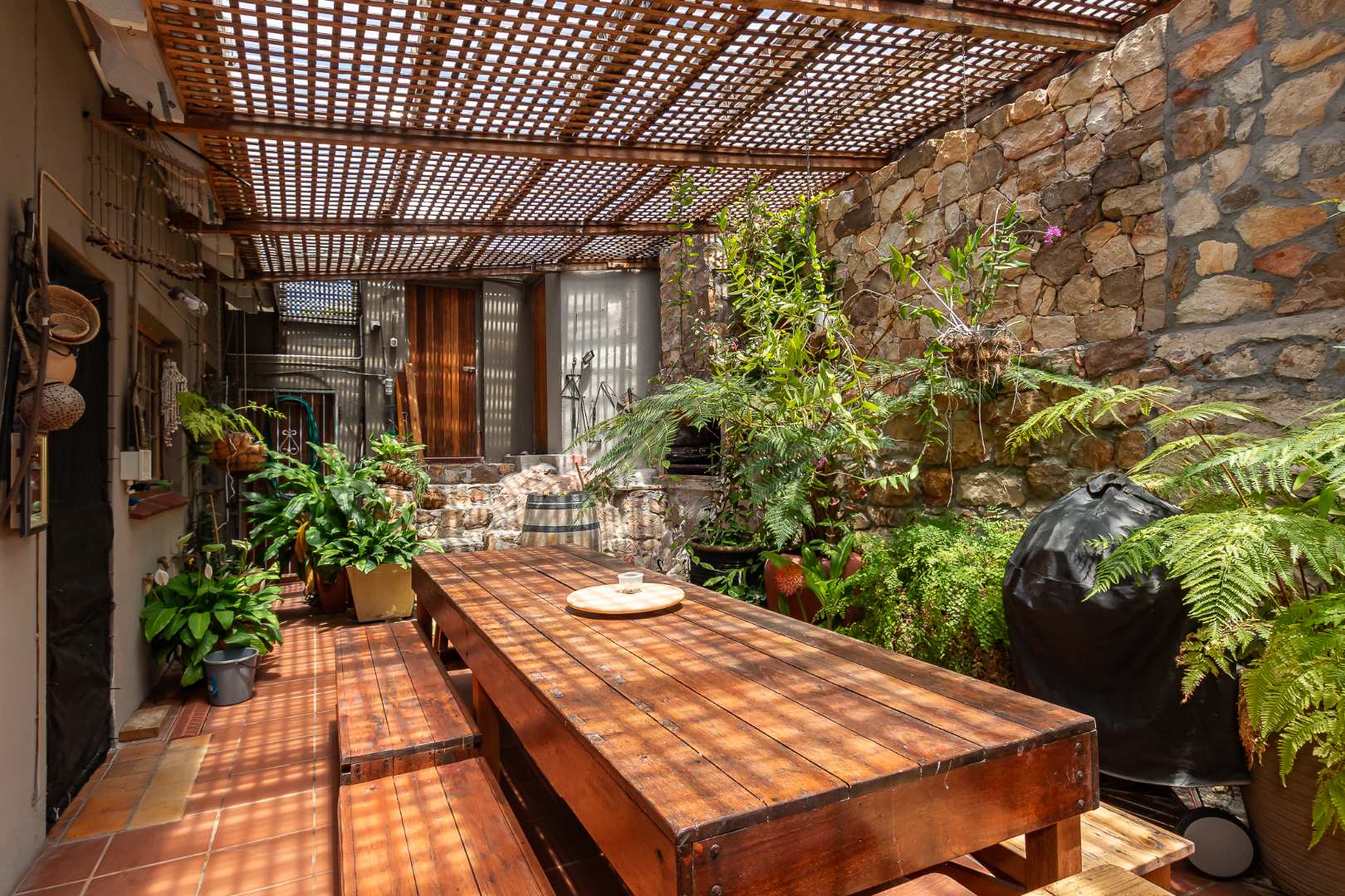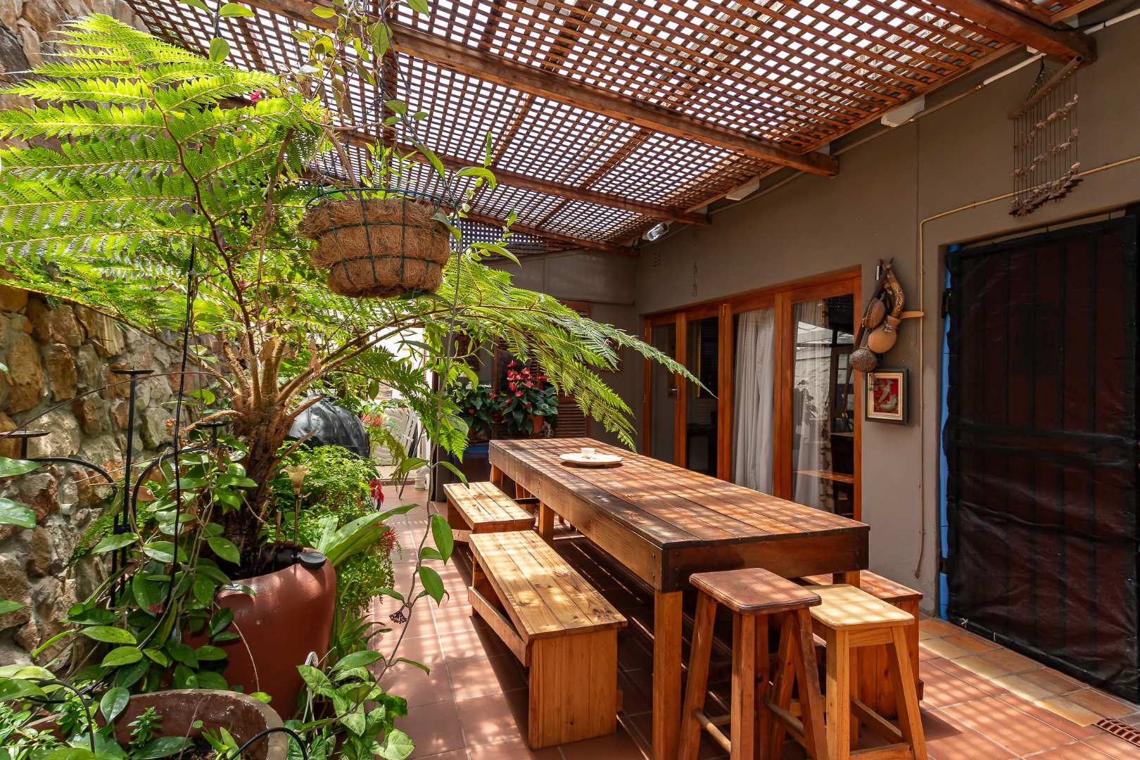 The dining area has doors leading into a beautiful entertainment area with built in braai.
