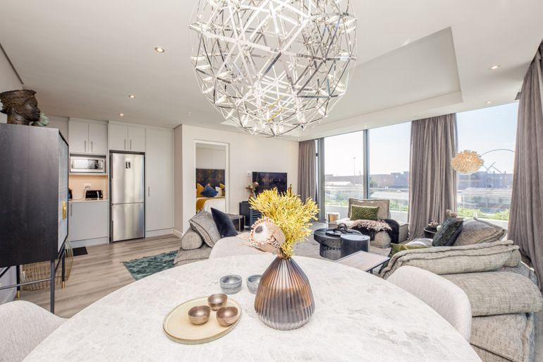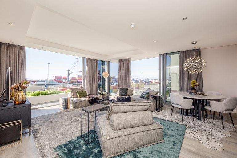This fully furnished, north-facing corner apartment offers uninterrupted harbour, sea, and Table Mountain views. Designed with bespoke Weylandts finishes, the spacious open-plan living and dining area flows effortlessly onto a private verandah, ideal for relaxing or entertaining.