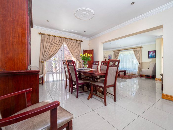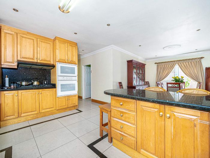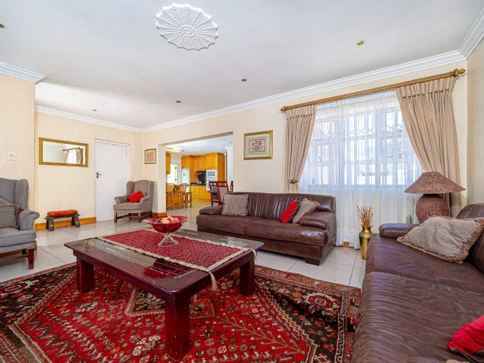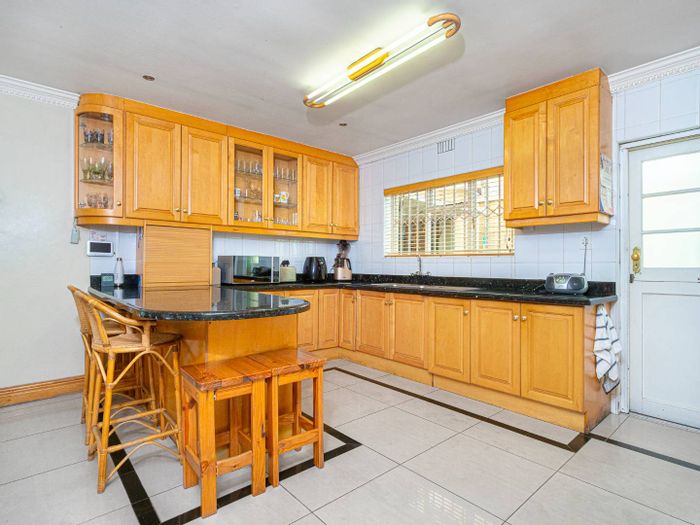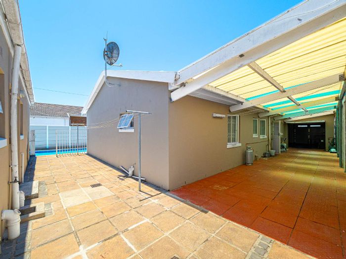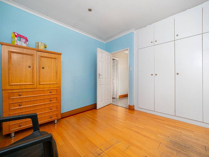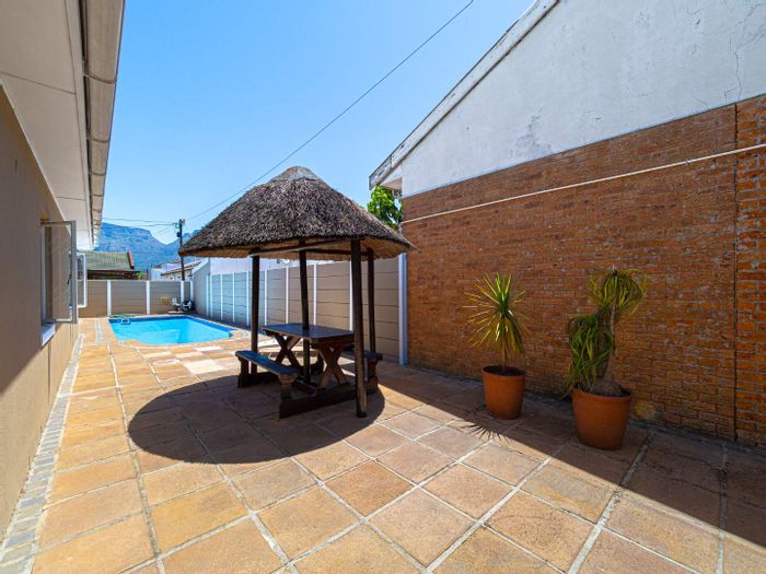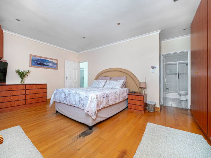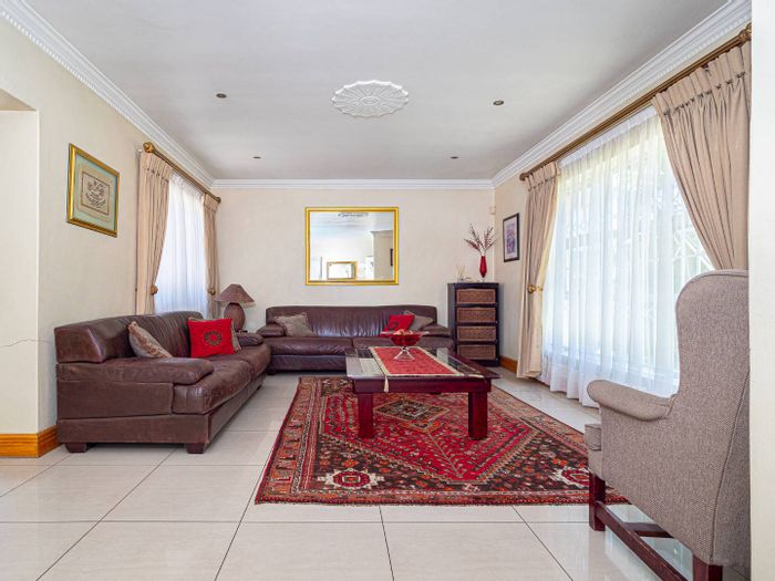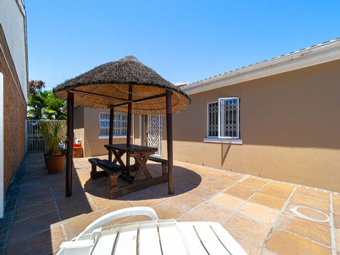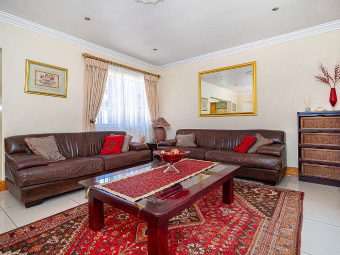 This pristine house comprises 2 bedrooms, 1 bathroom, small office/study space, lounge/dining area, modern open plan kitchen with granite kitchen tops, glass top stove with oven, and a neatly enclosed cupboard space for a washing machine and tumble dryer. The kitchen has double doors leading out onto a totally private undercover entertainment patio/conservatory providing a peaceful retreat. Access this smaller home from the street level onto a brickpaved courtyard with security doors leading into a tiled entrance hall. This property offers excellent security viz security doors, burglar alarm and outside beams.
