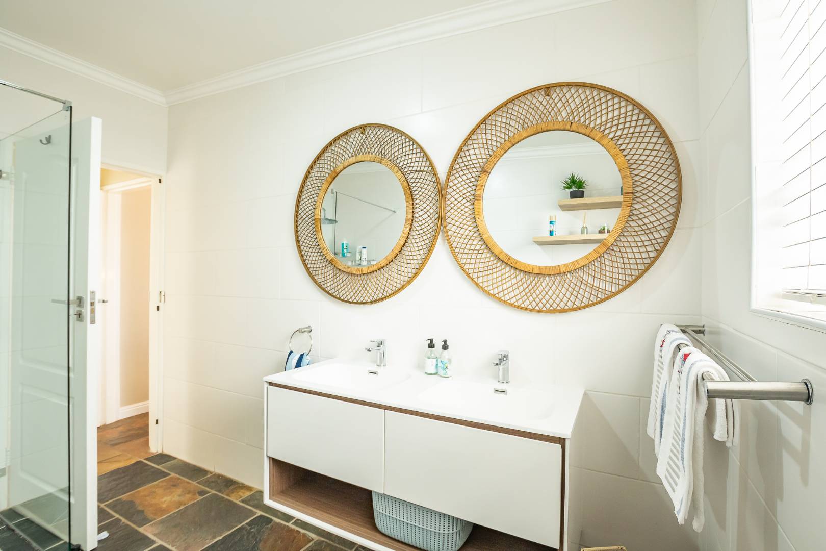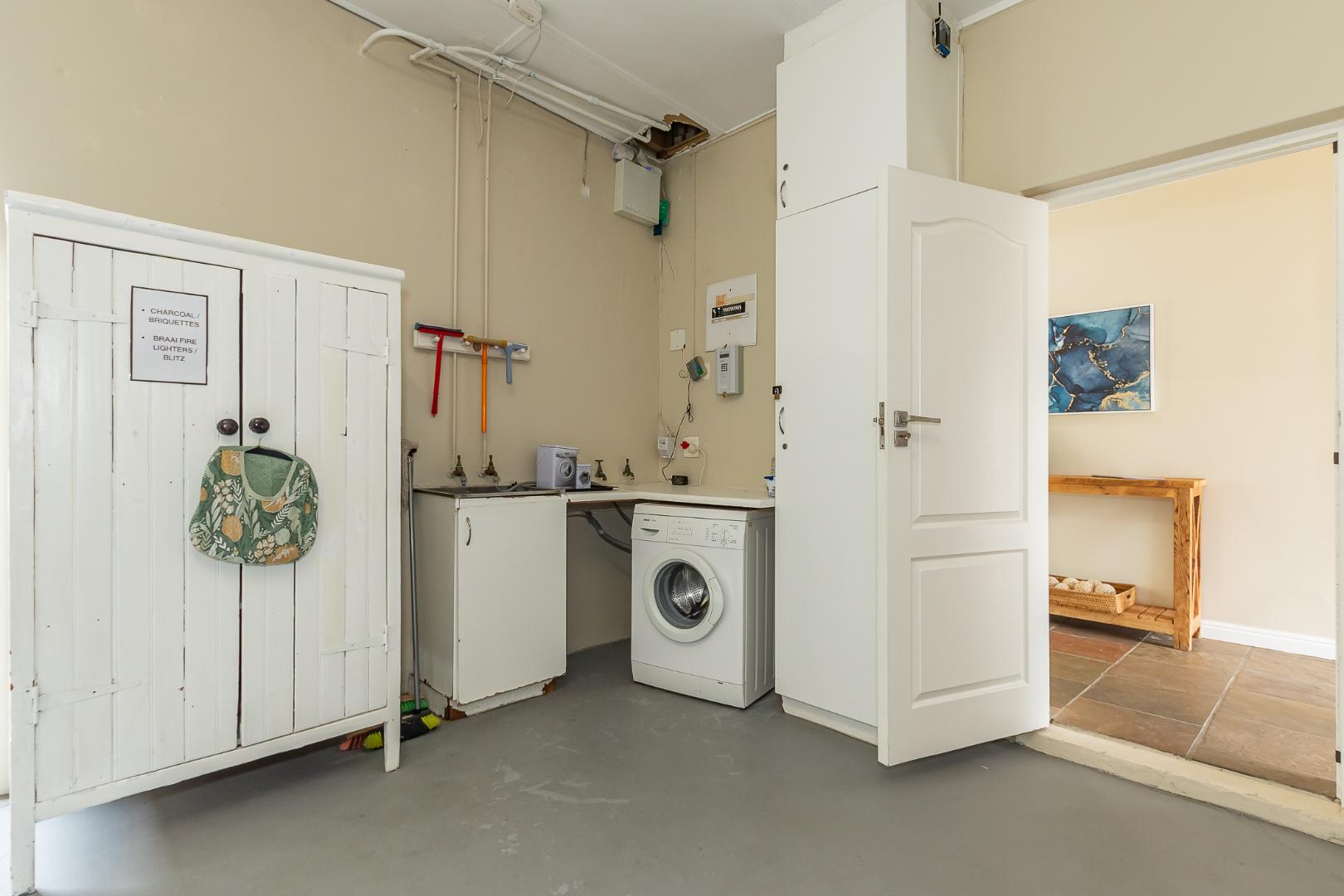 Enter through grand double doors into a bright, welcoming space. All four bedrooms are located to the right, with the main bedroom opening directly onto the beach. The double garage on the left accommodates two vehicles, with additional parking for two more outside. Inside, you’ll find a well-equipped laundry area that leads to a private courtyard with washing lines and ample built-in cupboards for extra storage.