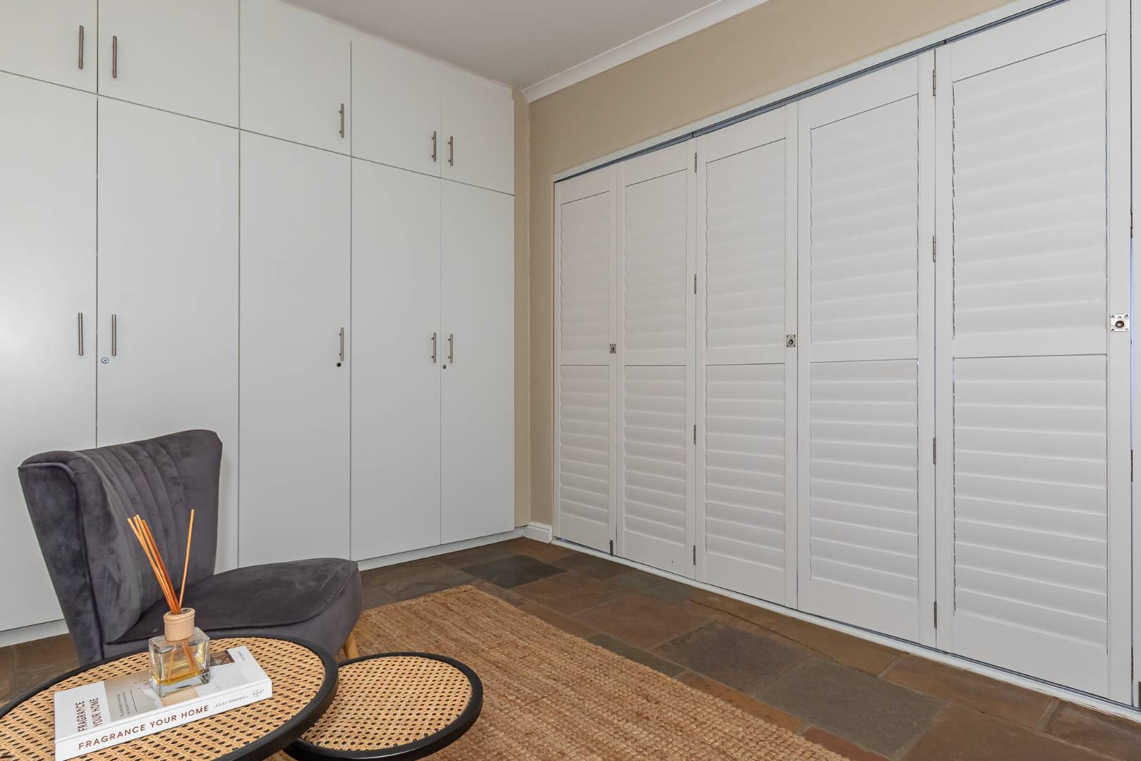 The upstairs and downstairs areas feature American sliding shutters. Both the lounge and dining areas, on each level, are equipped with these shutters.