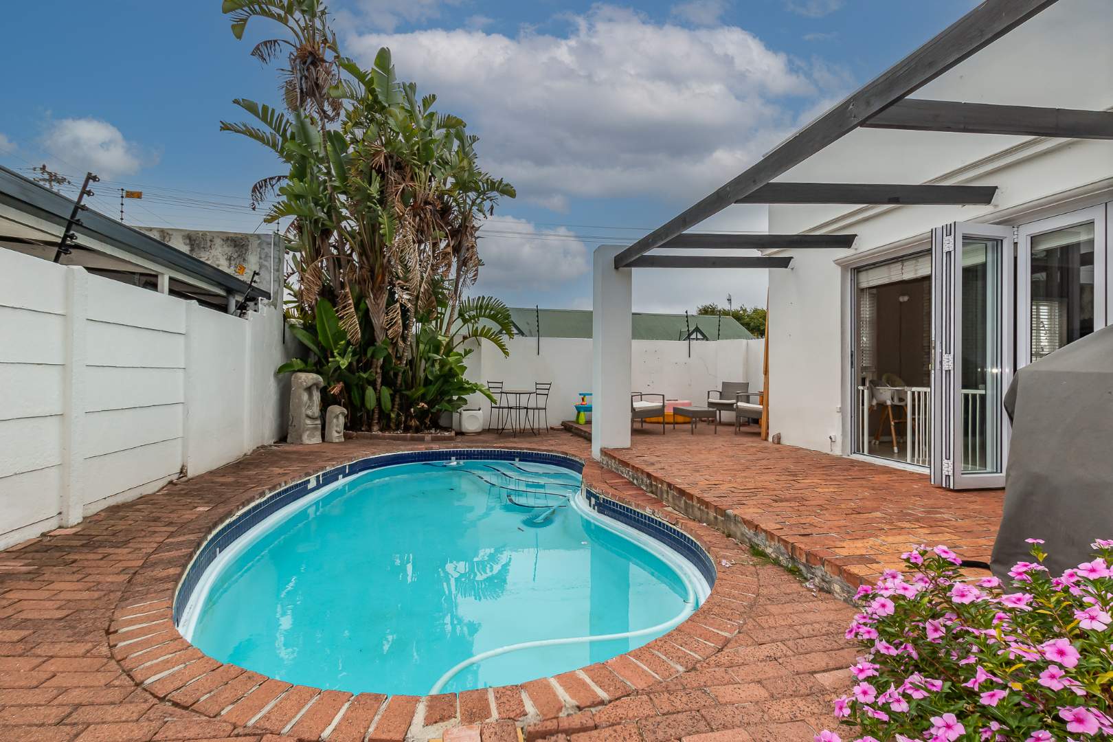Folding doors open onto a large entertainment patio and sparkling pool — perfect for hosting friends, enjoying family braais or simply unwinding in your own private oasis.