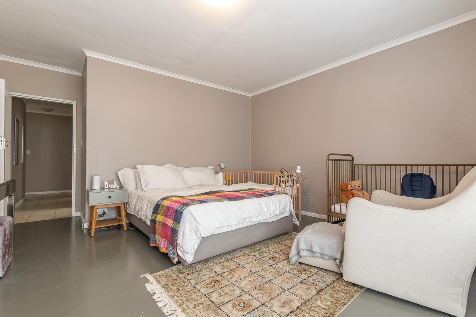 The home offers three well-proportioned bedrooms. The sun-drenched main bedroom enjoys a north-facing aspect, with double-volume doors opening directly onto the garden and pool area.