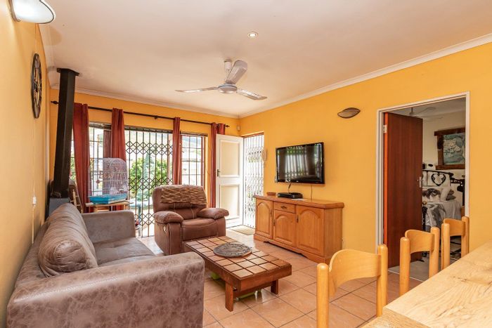 Charming three-bedroom home in Plumstead with modern amenities, solar geyser, ample parking, security features, and potential for outdoor entertainment.