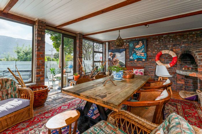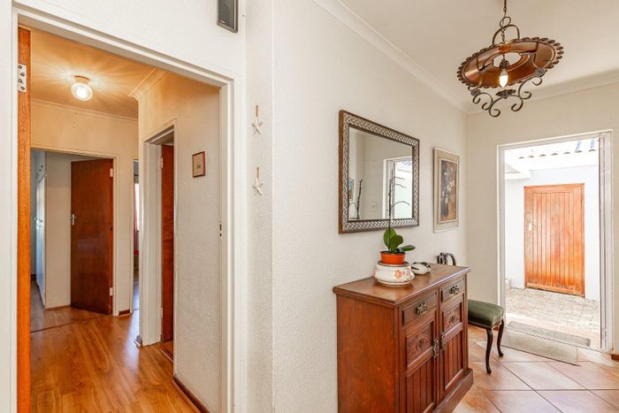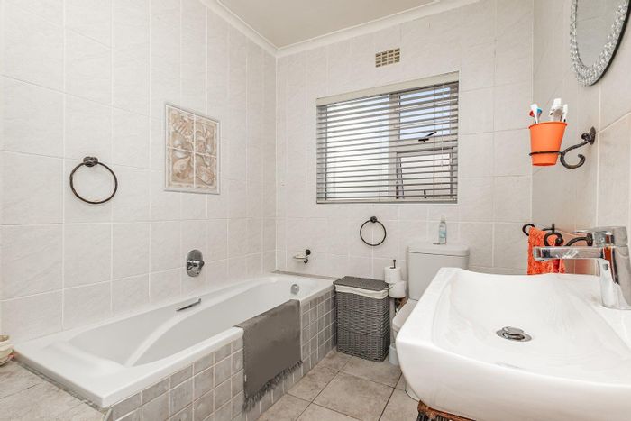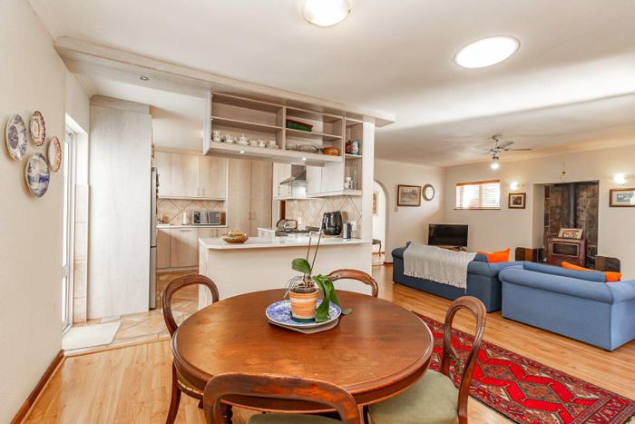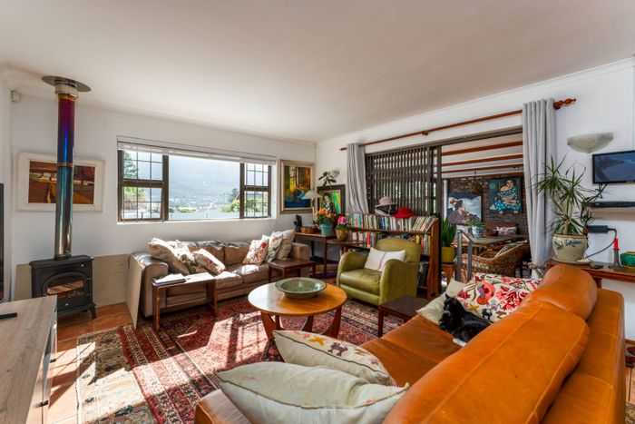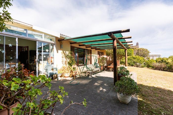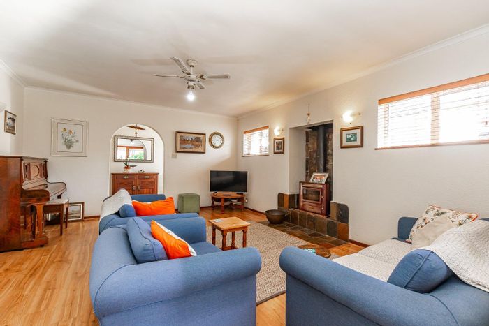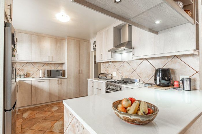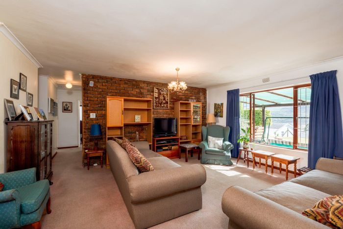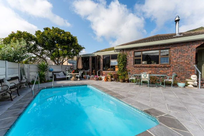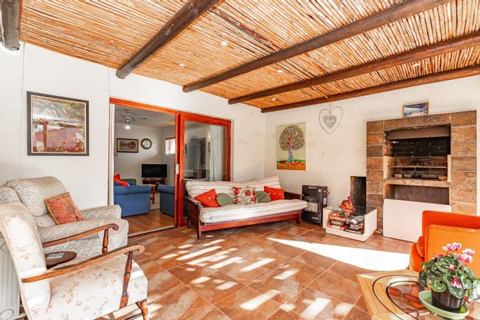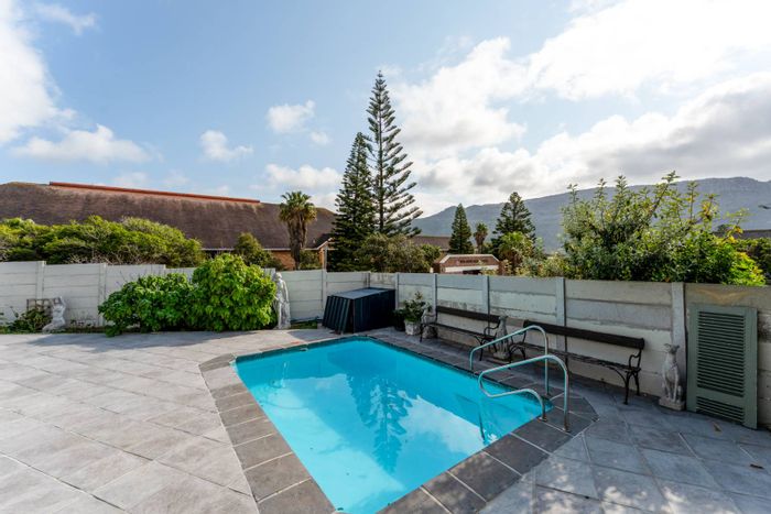 Centrally located, safe family haven where kids make lasting memories — solar-heated pool, in-ground trampoline, built-in pizza oven in the braai room, mountain views; four bedrooms, double garage.