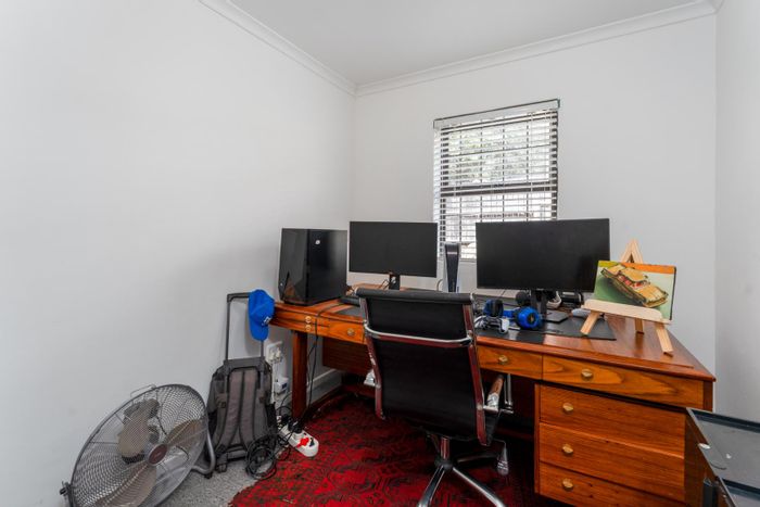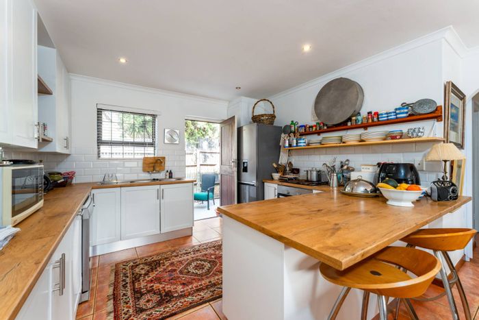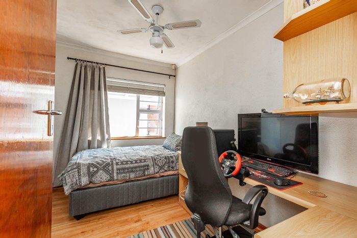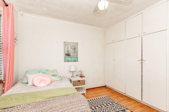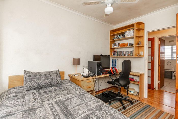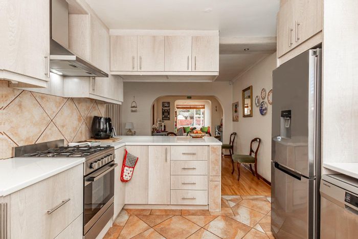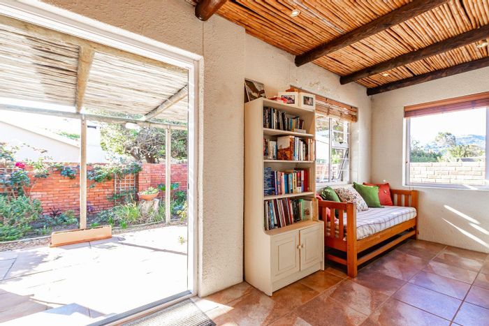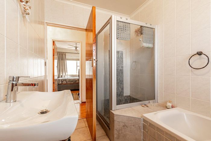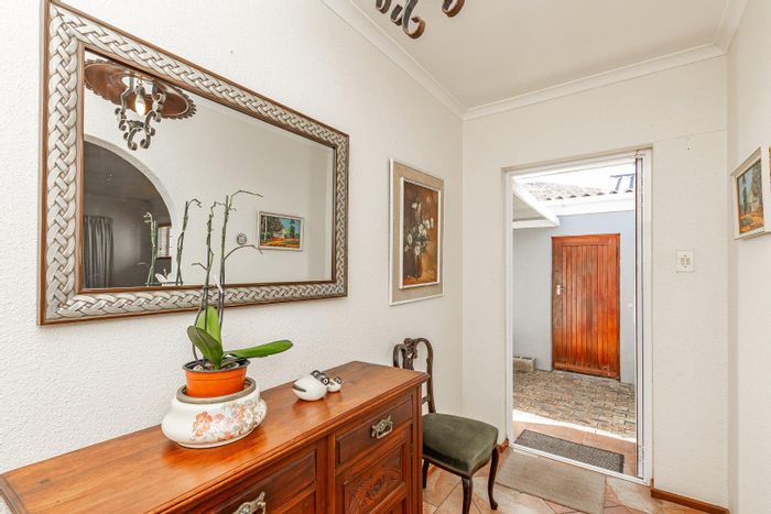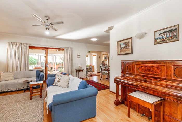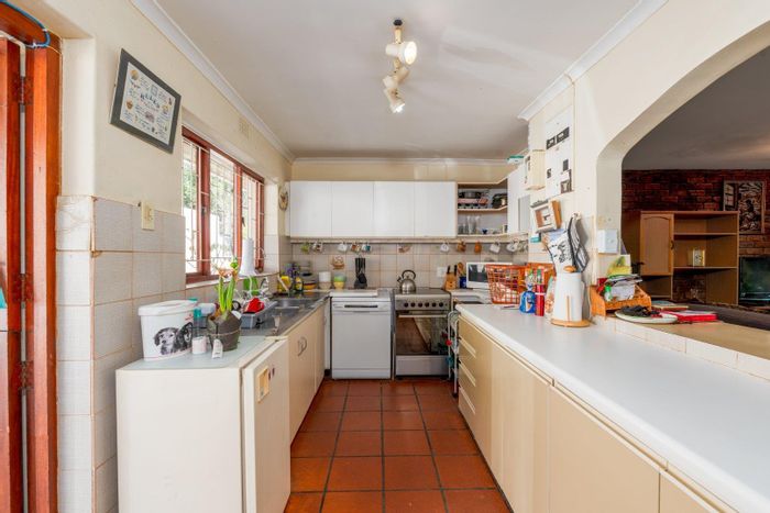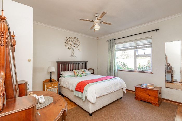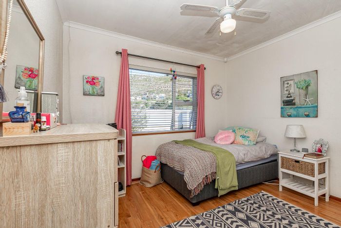 Centrally located, safe family haven where kids make lasting memories — solar-heated pool, in-ground trampoline, built-in pizza oven in the braai room, mountain views; four bedrooms, double garage.