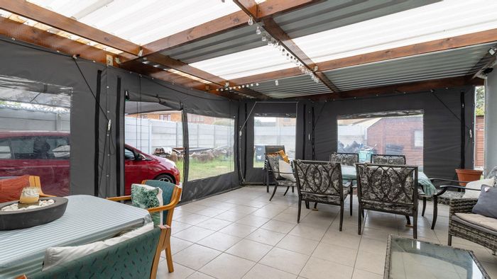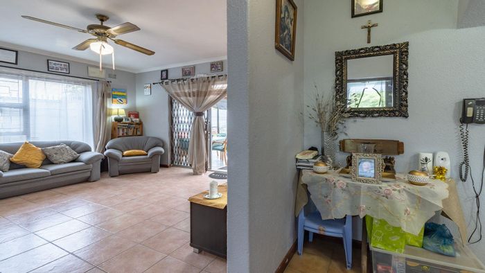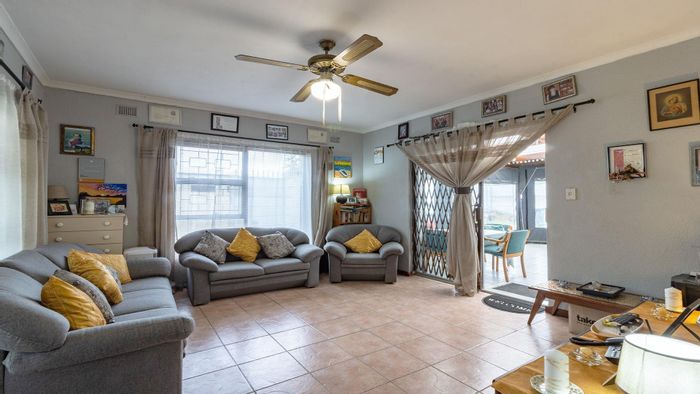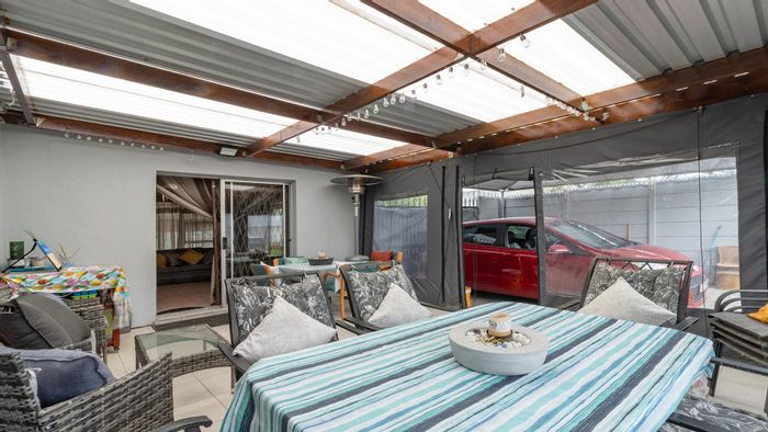 Peaceful neighborhood living a short drive from shops and schools, with airy open-plan living and an outdoor entertainment area with built-in braai — two bedrooms, two bathrooms, single garage.