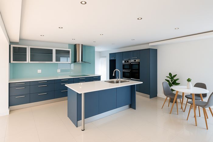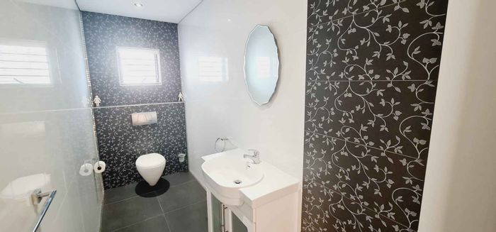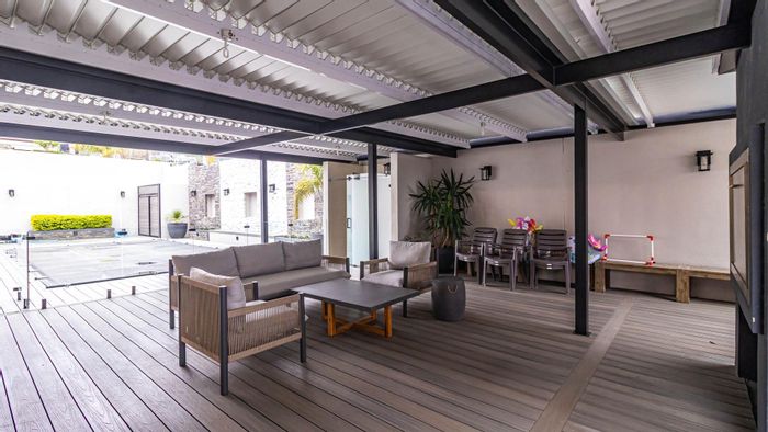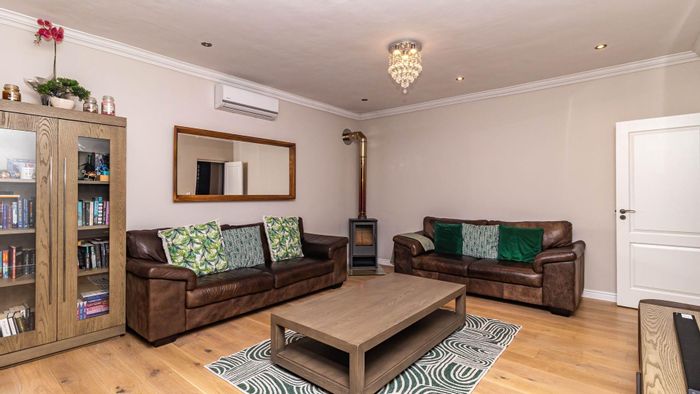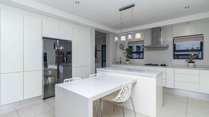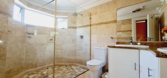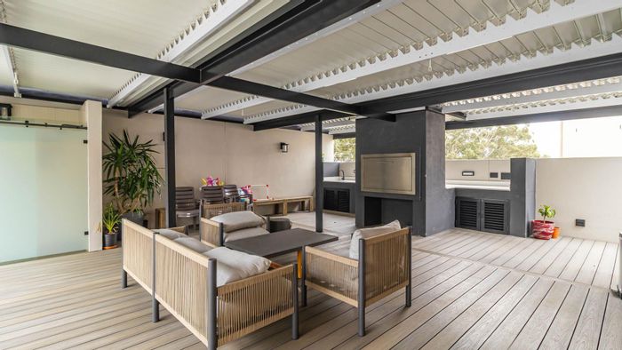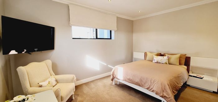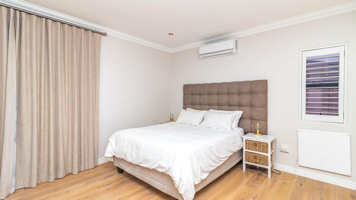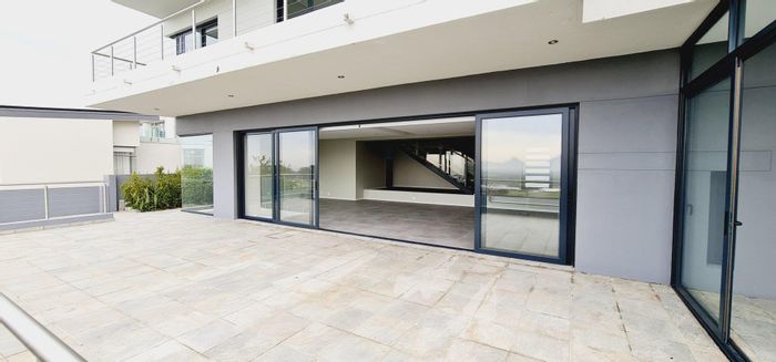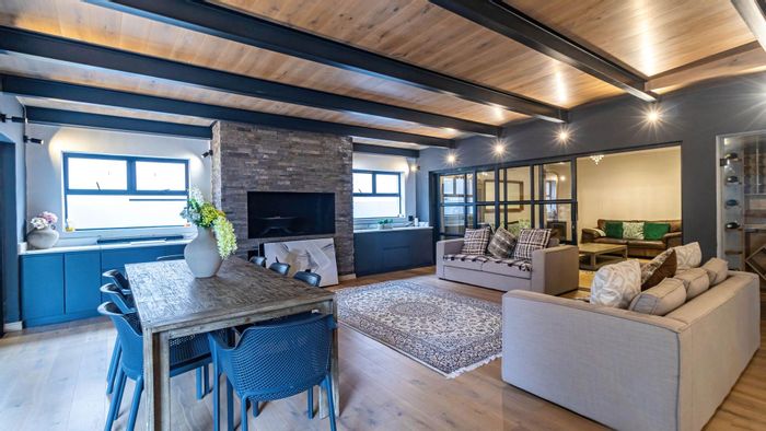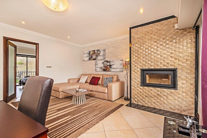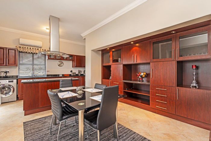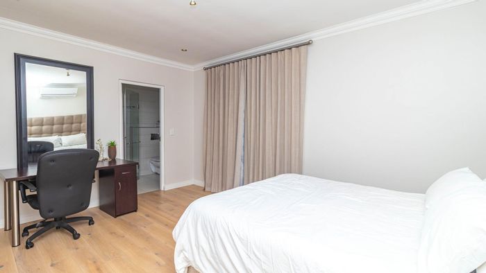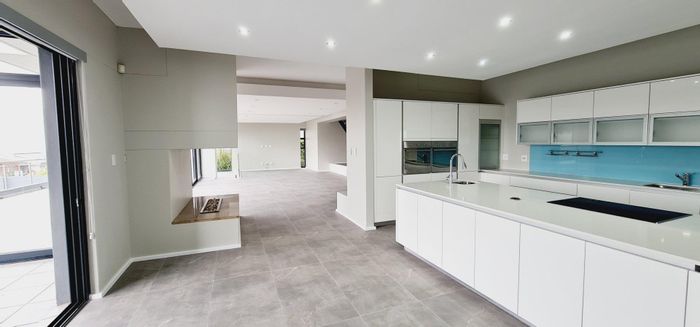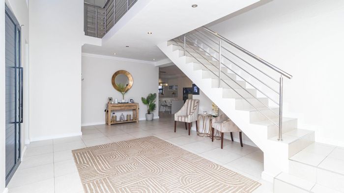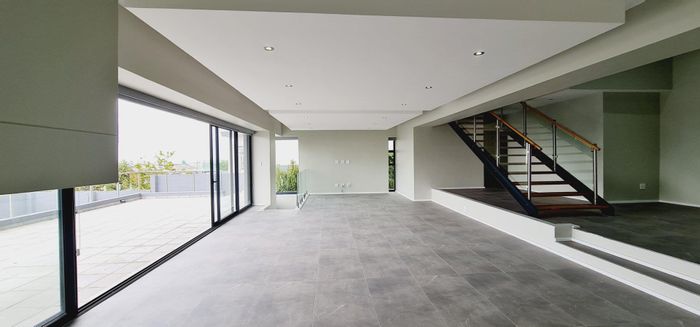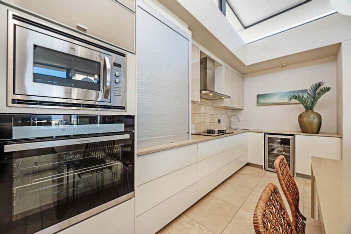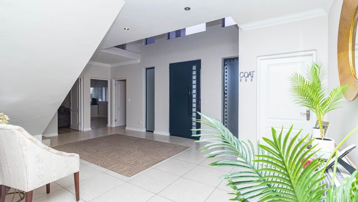 Panoramic Table Mountain views from prestigious Baronetcy Estate — contemporary showpiece with bespoke chef’s kitchen, heated pool, undercover braai and home cinema. 5 beds, 4 baths, 3 garages.