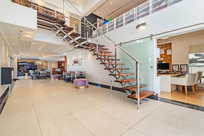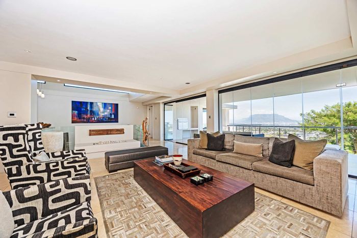 Elevated Cape Town living with sweeping Table Bay views, dual-residence layout for multi-generational living; includes private gym, cinema room and pool-ready terraces. Six beds, seven baths, four garages.