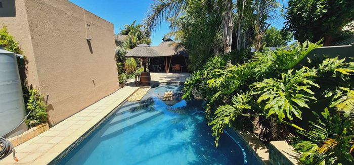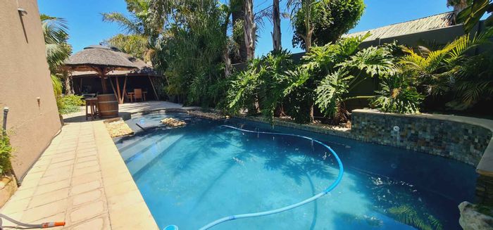 Entertainer's home with pool and expansive outdoor space on a double corner plot in a family-friendly area; practical scullery and converted double garage suite, four beds, three baths.