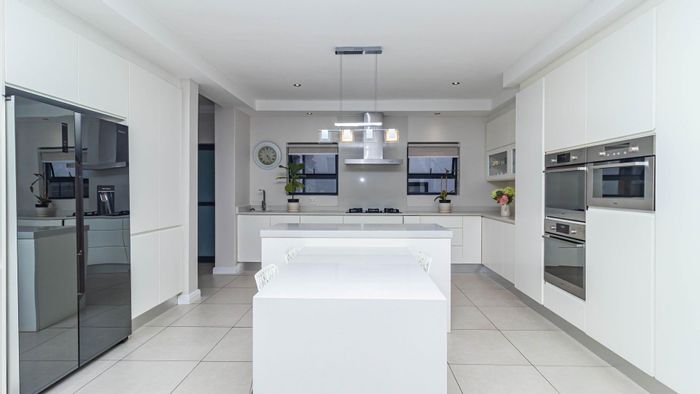 Six-bedroom, five-bathroom residence with four garages on 1172 m² in Plattekloof, featuring dual dwellings and sea views.