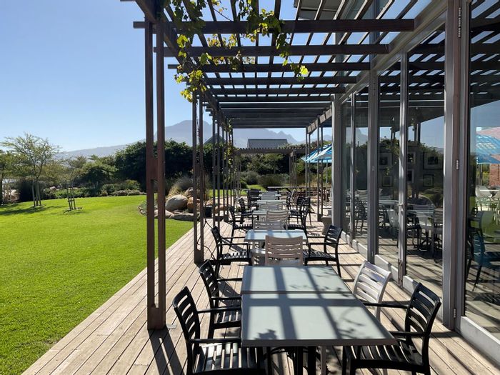 Elevated entertainer's home in Somerset West, set beneath the Helderberg with panoramic ocean views, expansive balcony with built-in braai, sparkling pool and a separate one-bed apartment.
