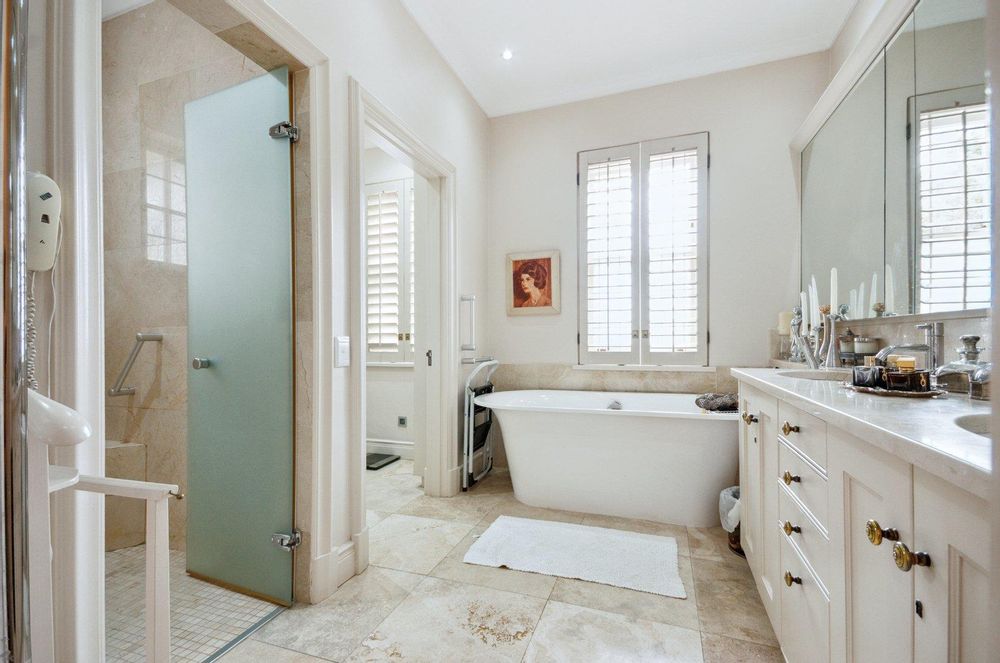 The main bathroom includes a bath, separate shower, separate toilet, and his & her basins.