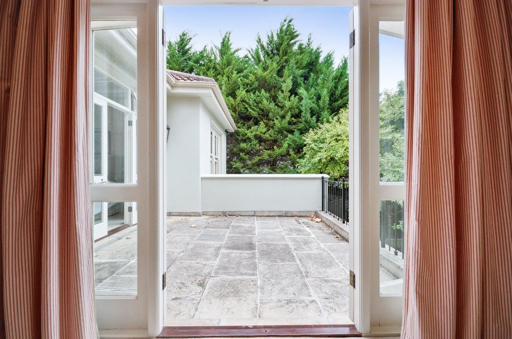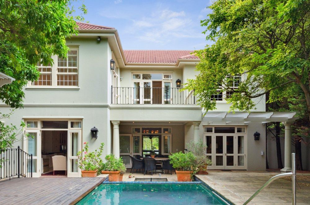 Upstairs, there are three generously sized bedrooms with built-in cupboards and a large private balcony overlooking the pool and garden.
