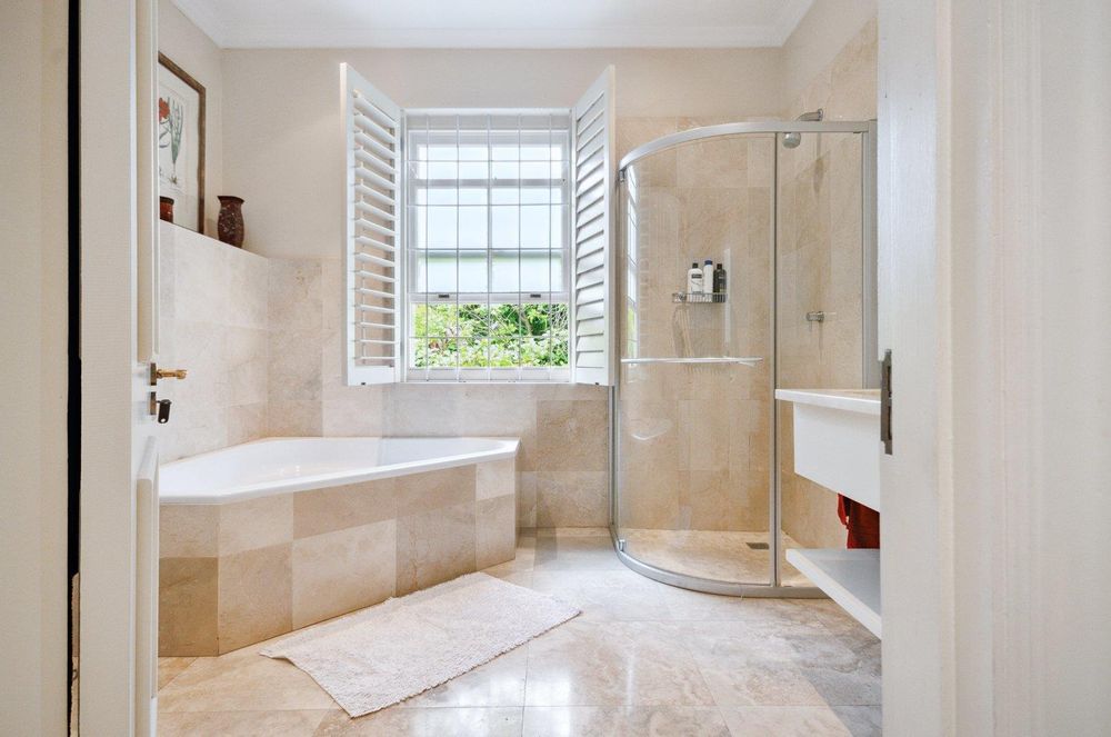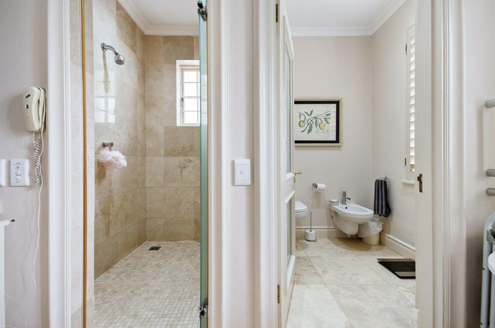 The second bathroom is equipped with a bathtub, shower, toilet, basin, and heated towel rails.