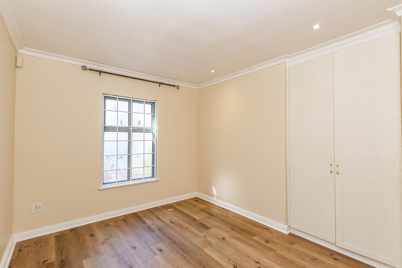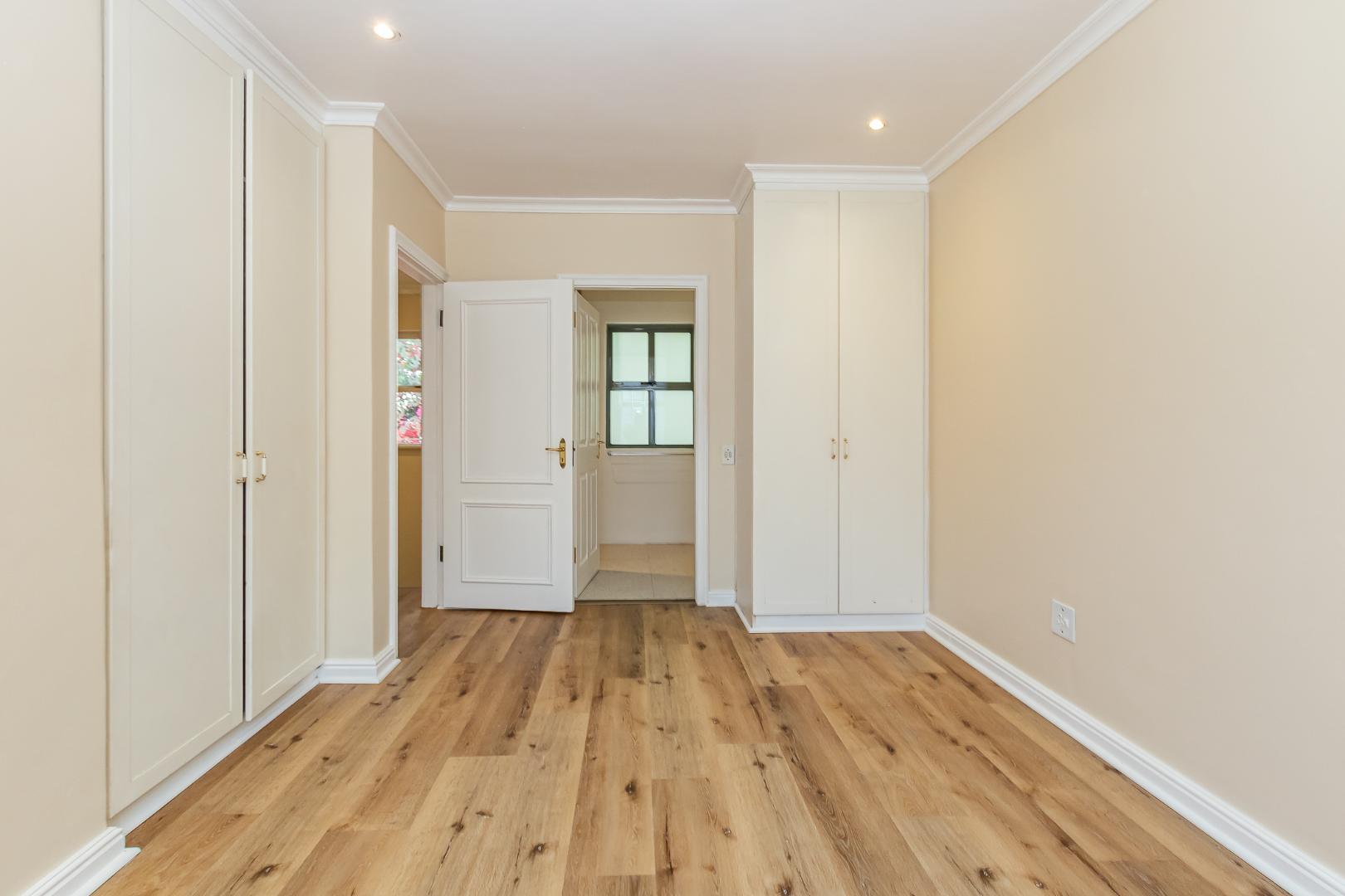 Both bedrooms boast laminated flooring and en-suite bathrooms. The main bedroom offers ample cupboard space and opens onto a north-facing balcony that captures beautiful natural light throughout the day. The lounge, patio, and both bedrooms all enjoy this sunny north-facing aspect.