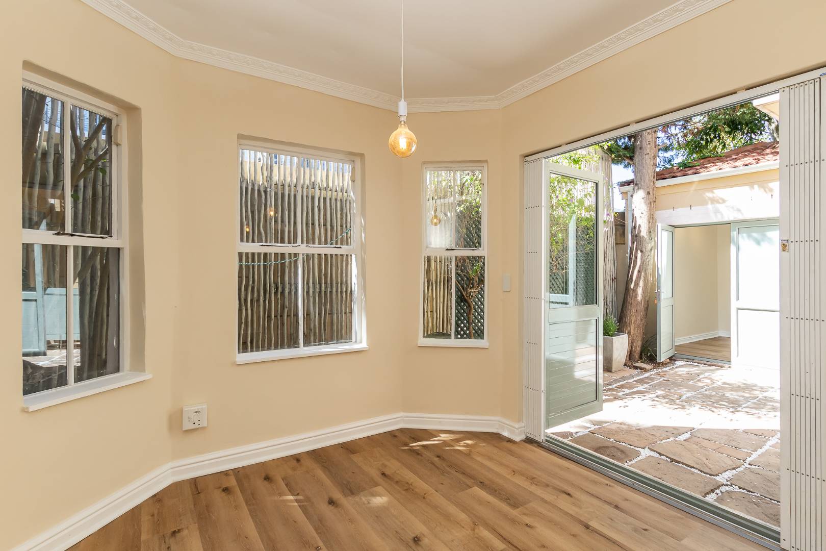 Enter the home via a welcoming entrance hall that flows into a bright lounge featuring a classic fireplace — perfect for cozy evenings. The adjoining dining/TV lounge creates a seamless open-plan feel, with both spaces opening onto a private patio ideal for morning coffee or relaxed entertaining.