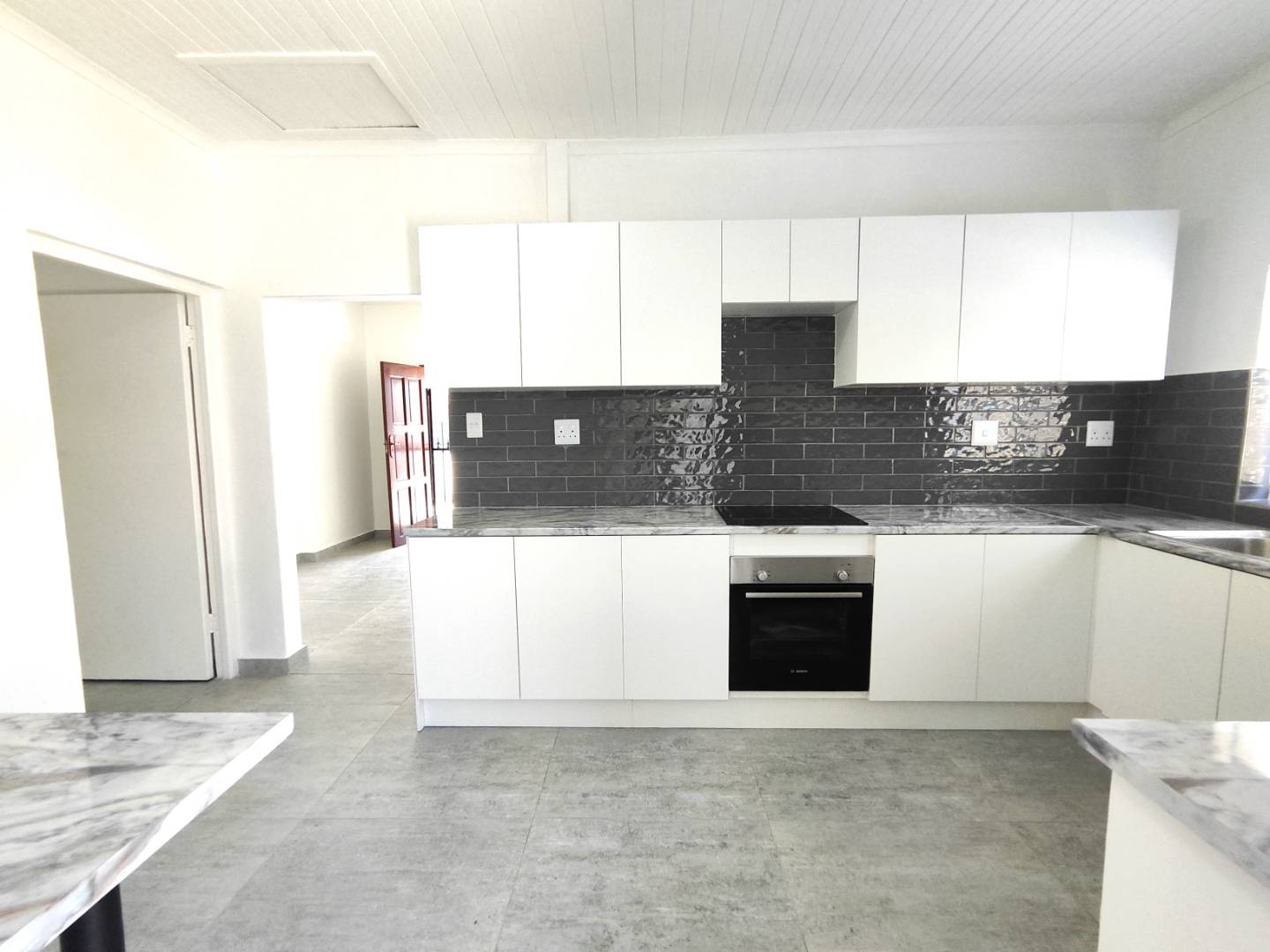 Step inside to find a warm and inviting open-plan lounge and living area that seamlessly connects to a well-appointed kitchen. The kitchen boasts a fitted stove, ample cabinetry, and space for your culinary needs, along with plumbing for one appliance. The entire home features tiled flooring, ensuring low maintenance and easy upkeep.