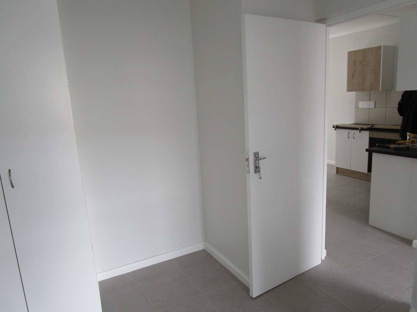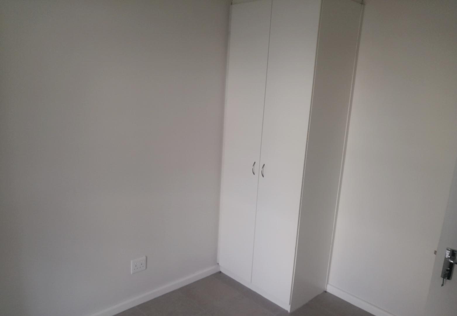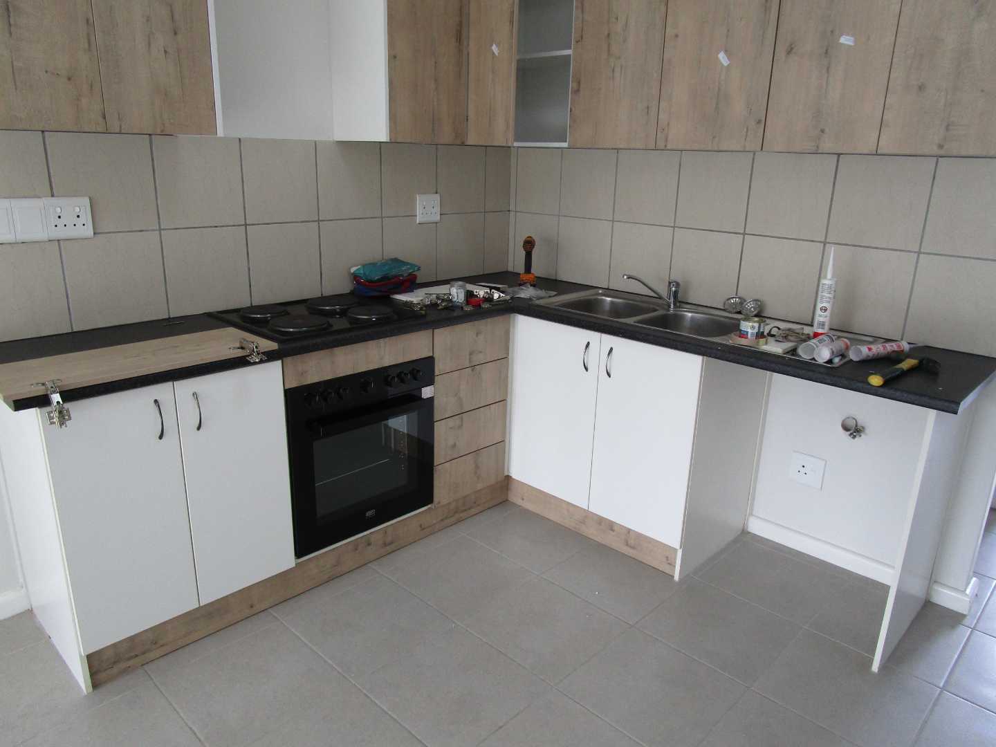 This Ground Floor apartment offer a open plan kitchen with built in cupboards, it has a space for a washing machine and a single door fridge. It has two bedroom. One bathroom with a shower over the bath, basin and toilet. The communal washing line is next to the unit. It is located in the corner of the complex giving space for a child to play. Ther are communal play area for the children and a braai space for entertainment.
