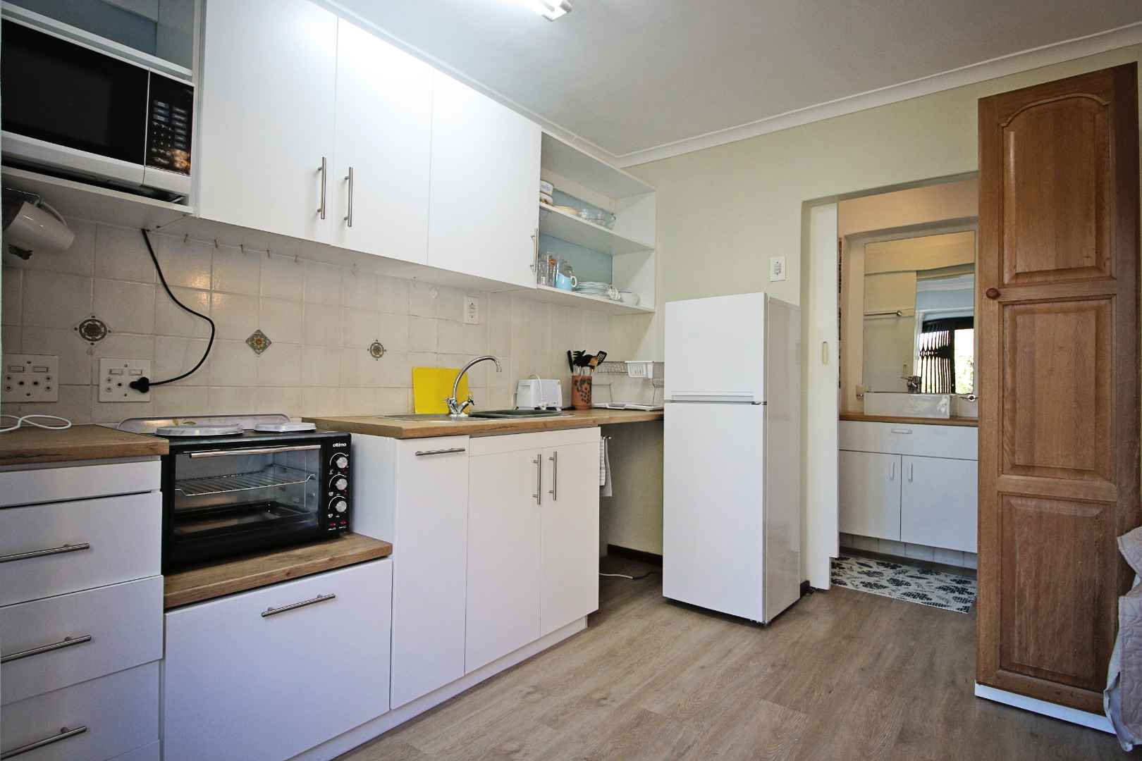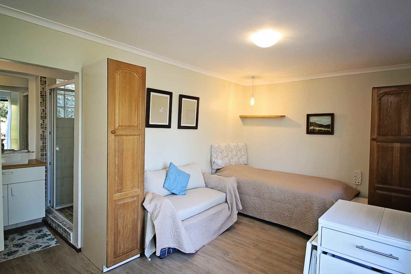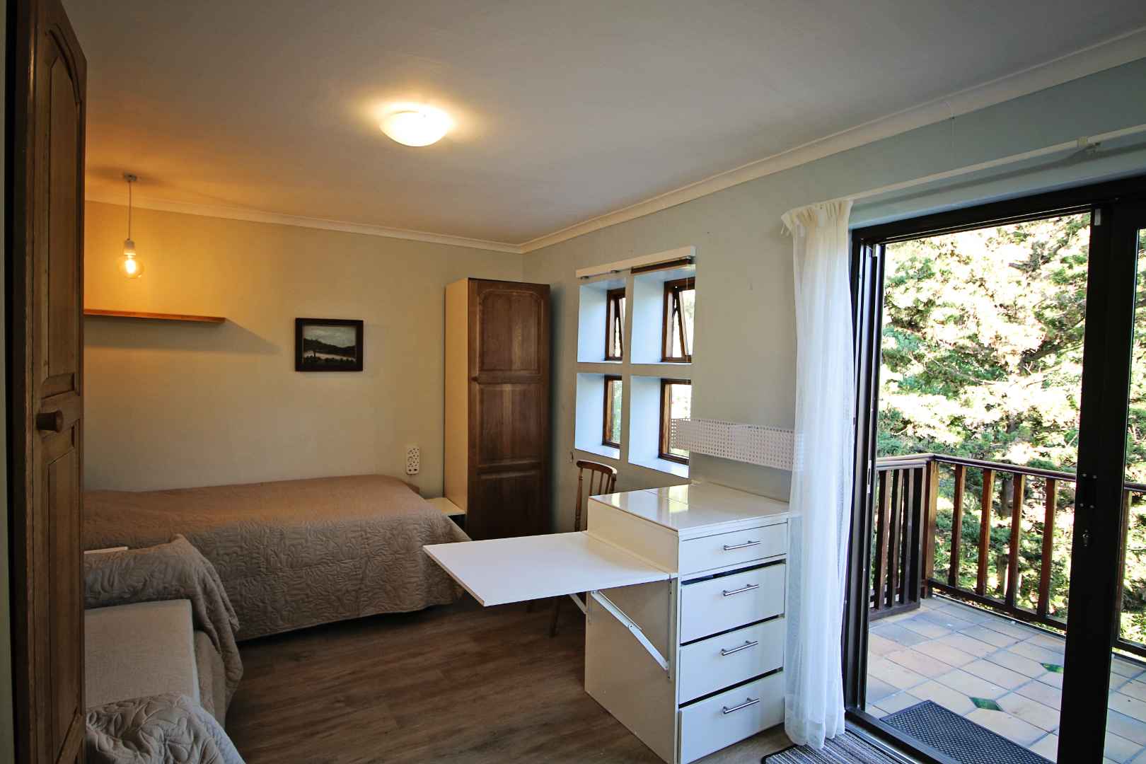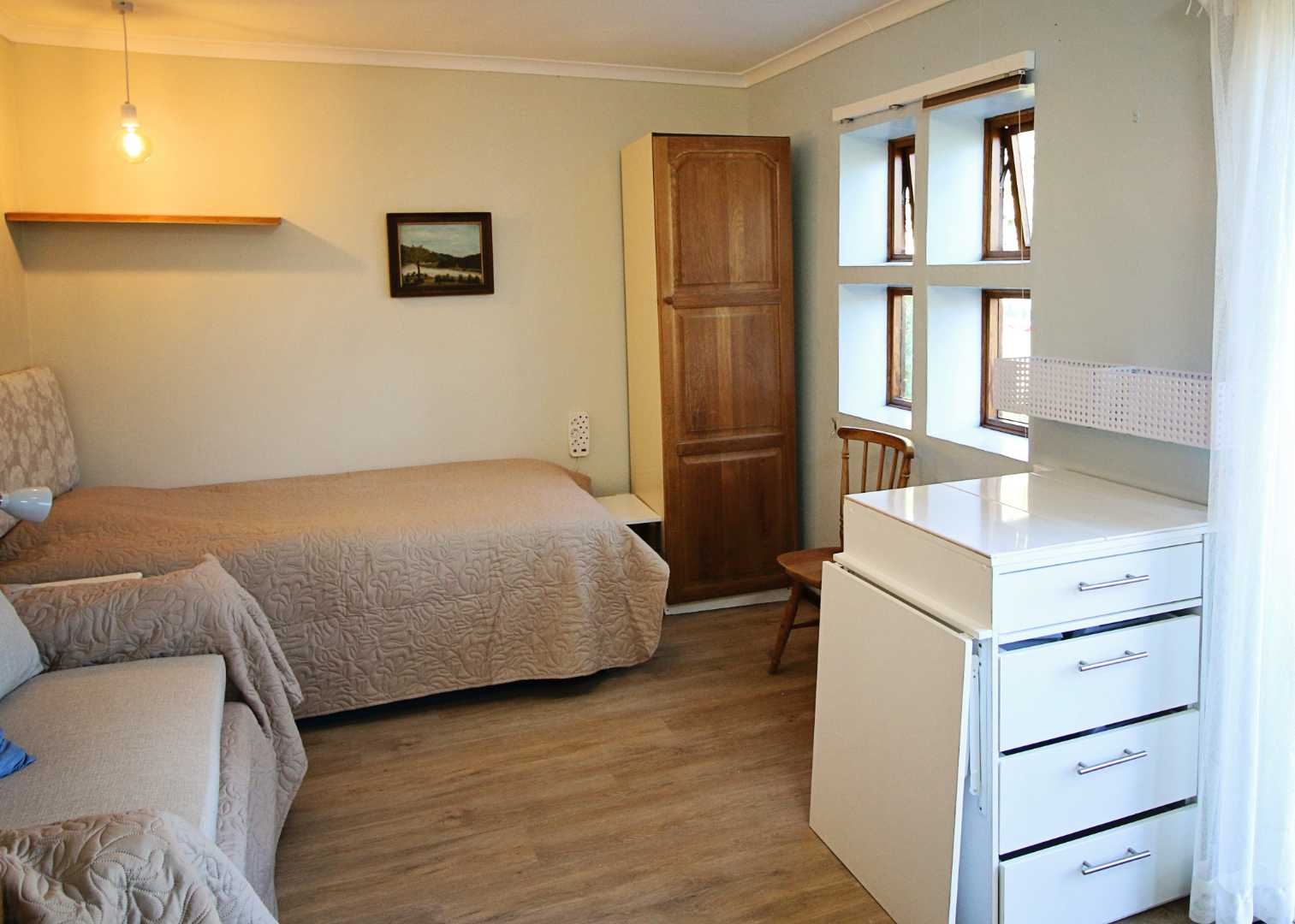 Located on a shared property, this apartment is perfect for a single professional and consists of an open plan bedsitter area, fitted kitchen, bathroom, small deck, and small garden. A few steps lead onto the open deck which offers lovely views of the mountain. The bedsitter has a single bed and couch, work area and 2 cupboards. The kitchen has sufficient bult in cupboards. The bathroom has a shower, loo basin and built in cupboards for extra storage. REGRET NO PETS.
