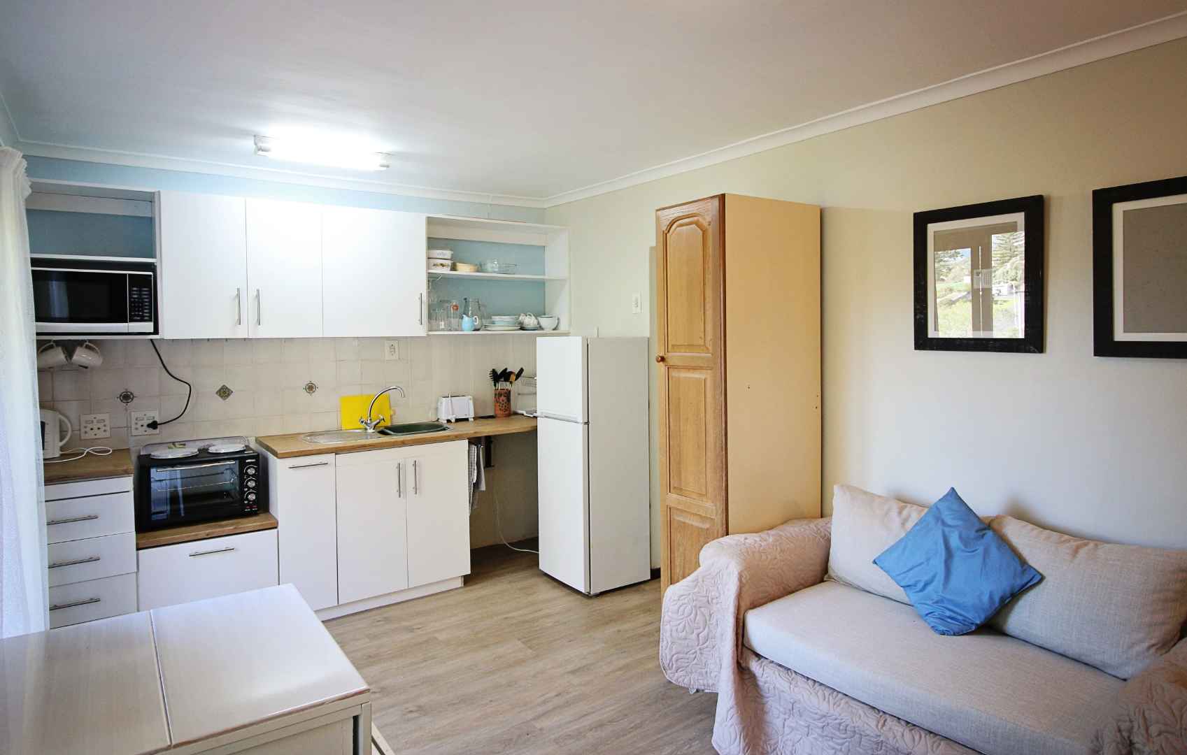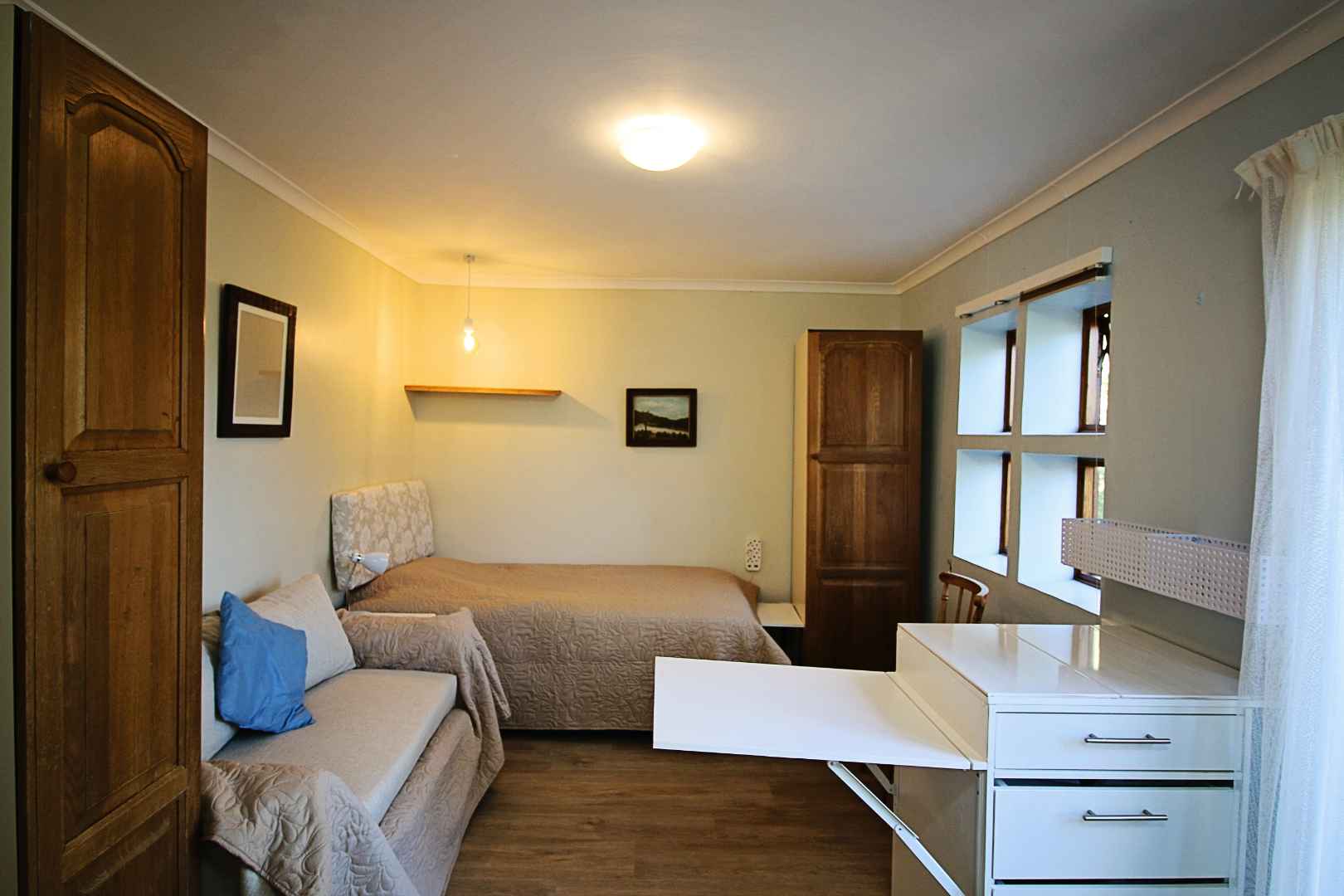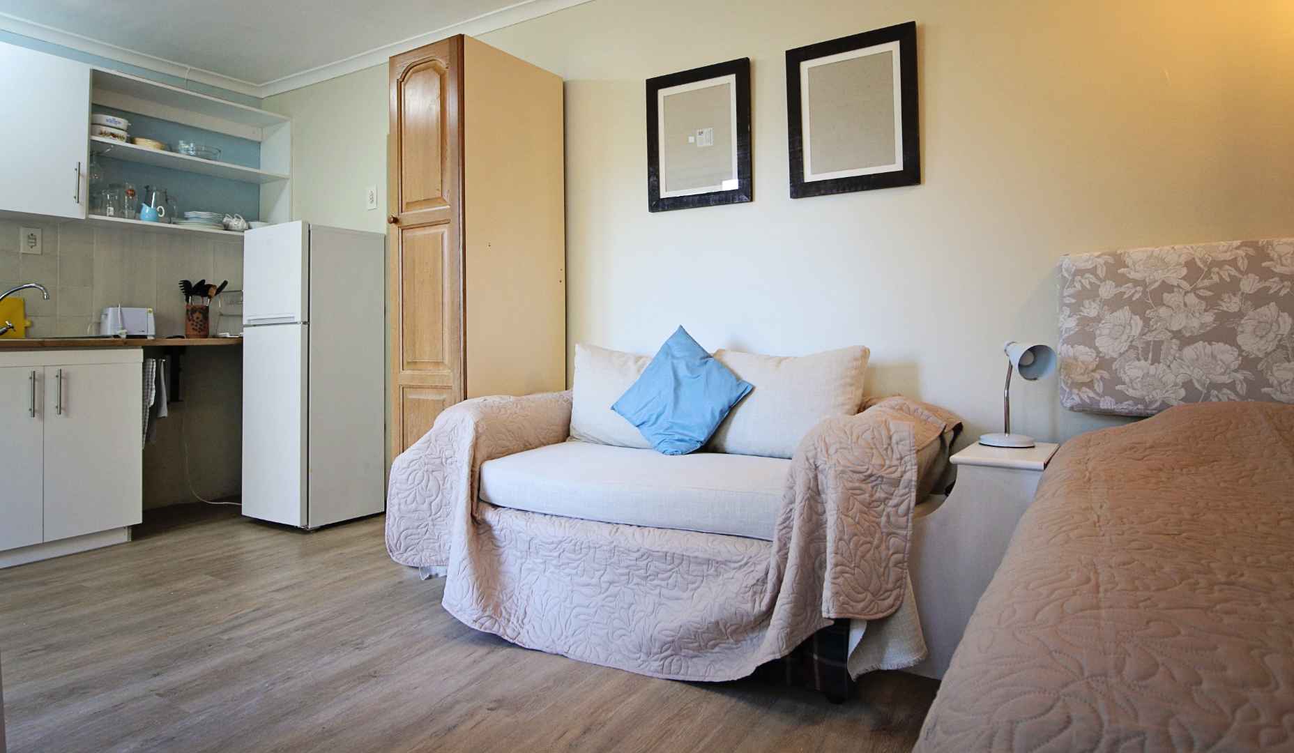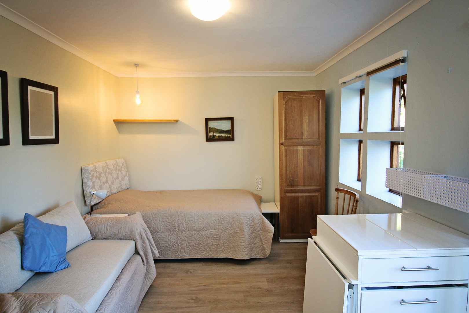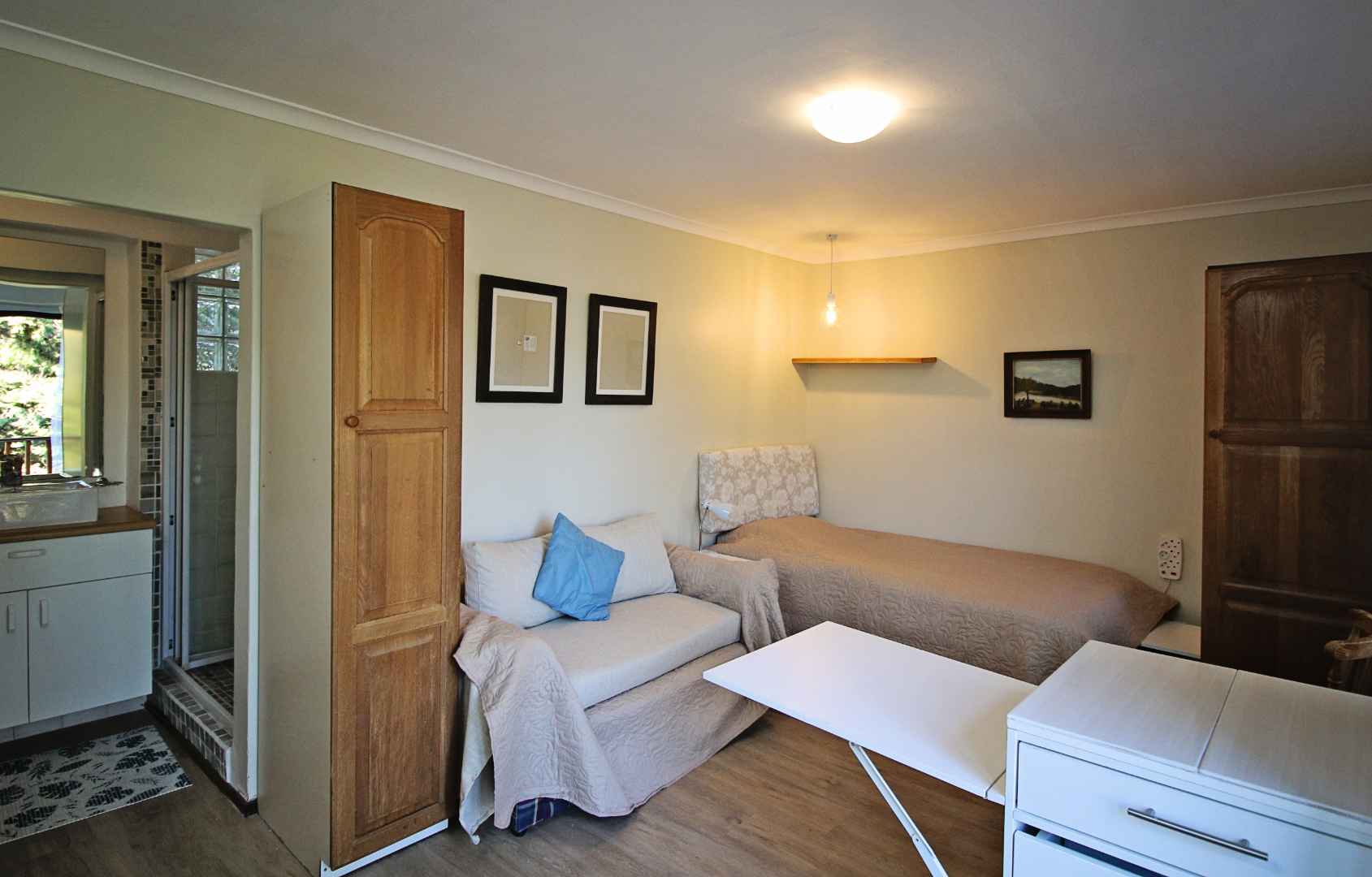 Located on a shared property, this apartment is perfect for a single professional and consists of an open plan bedsitter area, fitted kitchen, bathroom, small deck, and small garden. A few steps lead onto the open deck which offers lovely views of the mountain. The bedsitter has a single bed and couch, work area and 2 cupboards. The kitchen has sufficient bult in cupboards. The bathroom has a shower, loo basin and built in cupboards for extra storage. REGRET NO PETS.