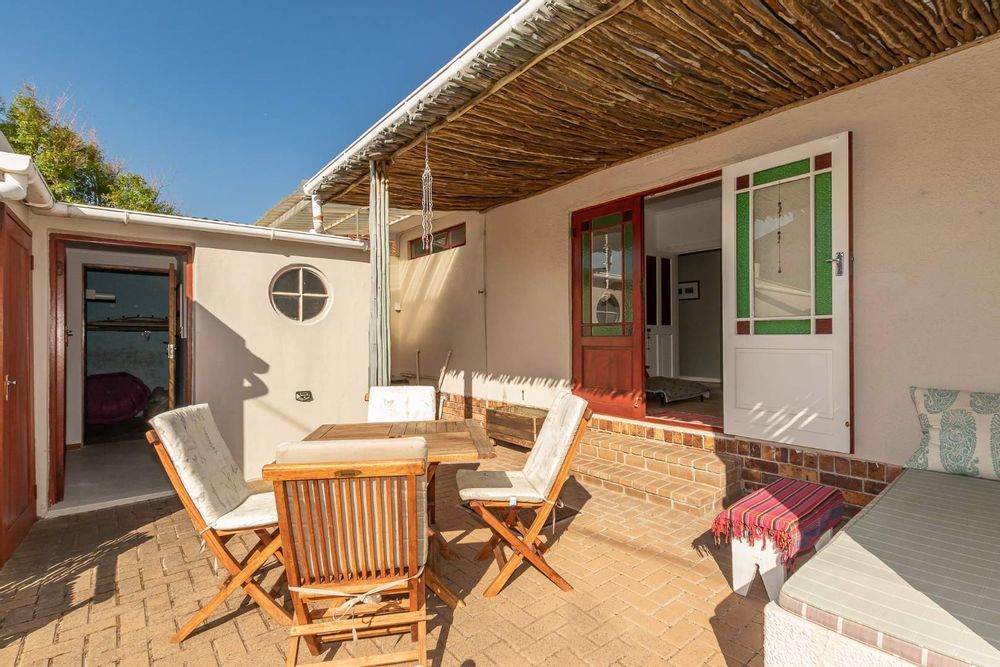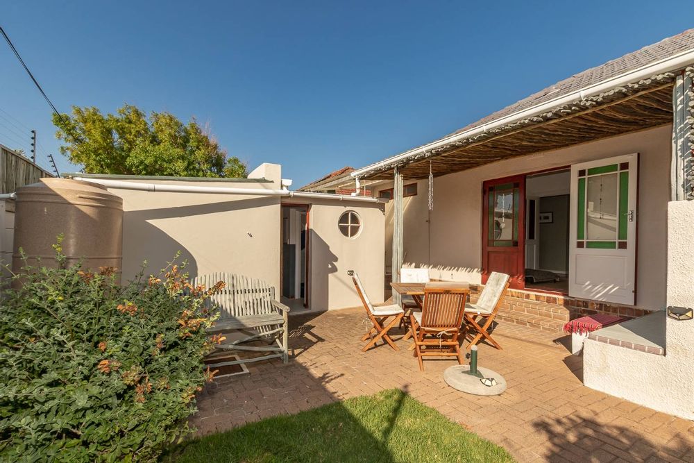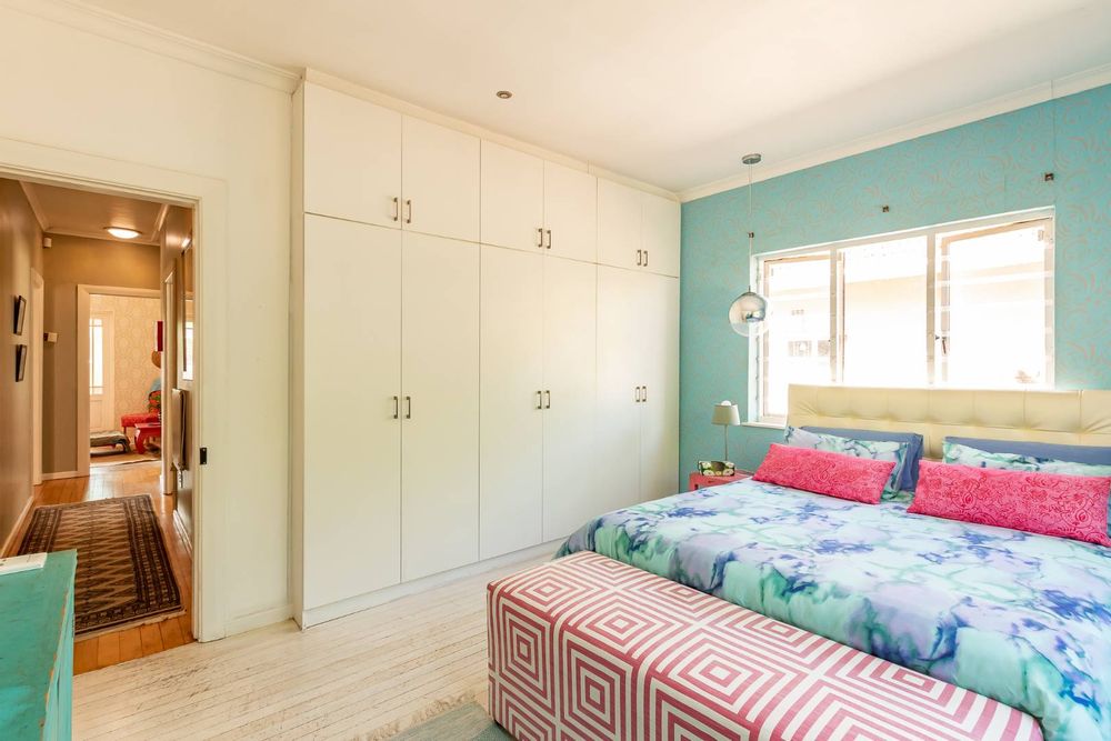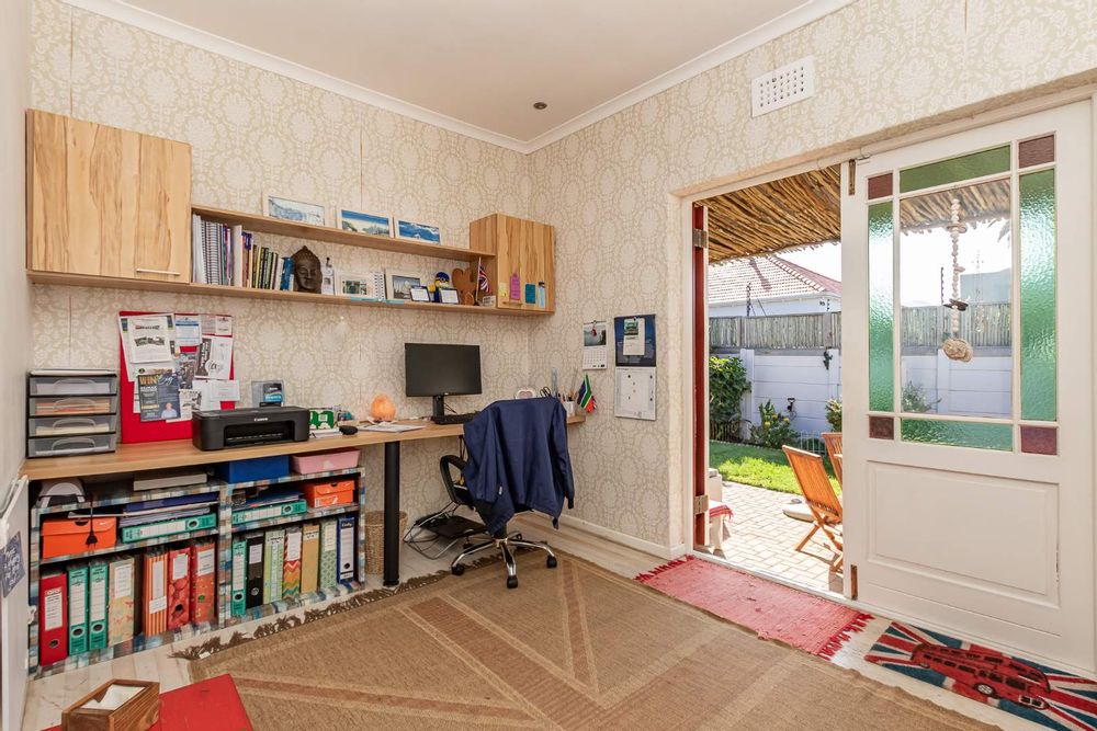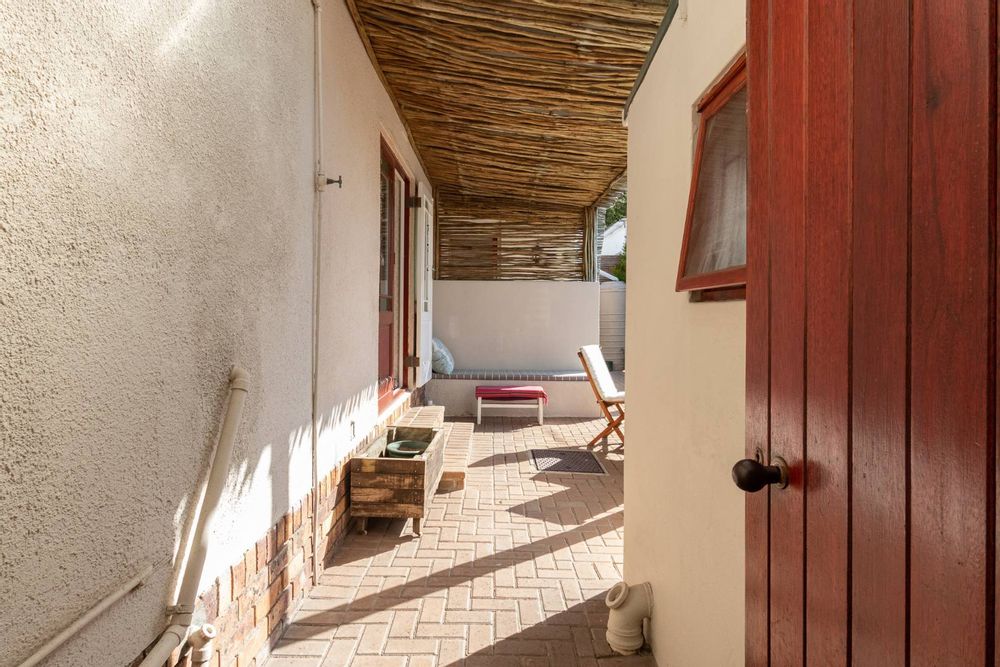 Upon entering the main house, you are enveloped in a sense of warmth and care that resonates throughout. The functional layout of the property features 3 bedrooms, each adorned with original wooden floors. Two of the bedrooms are equipped with built-in cupboards, while one is been utilized as an office/study that opens up to the back garden. The passage connecting the bedrooms and bathroom boasts linen cupboards for added storage convenience.
