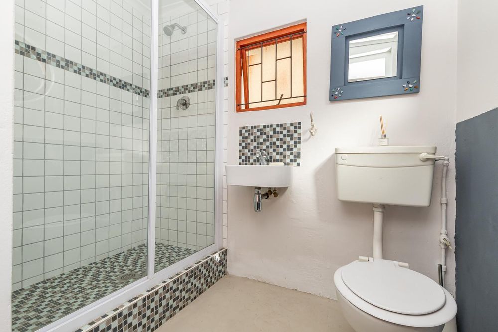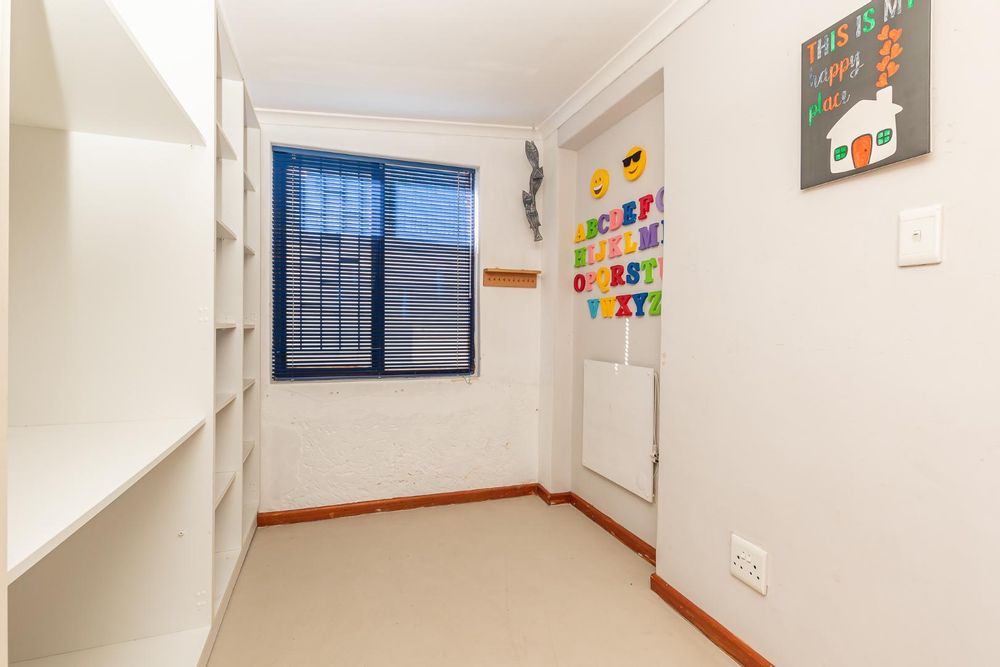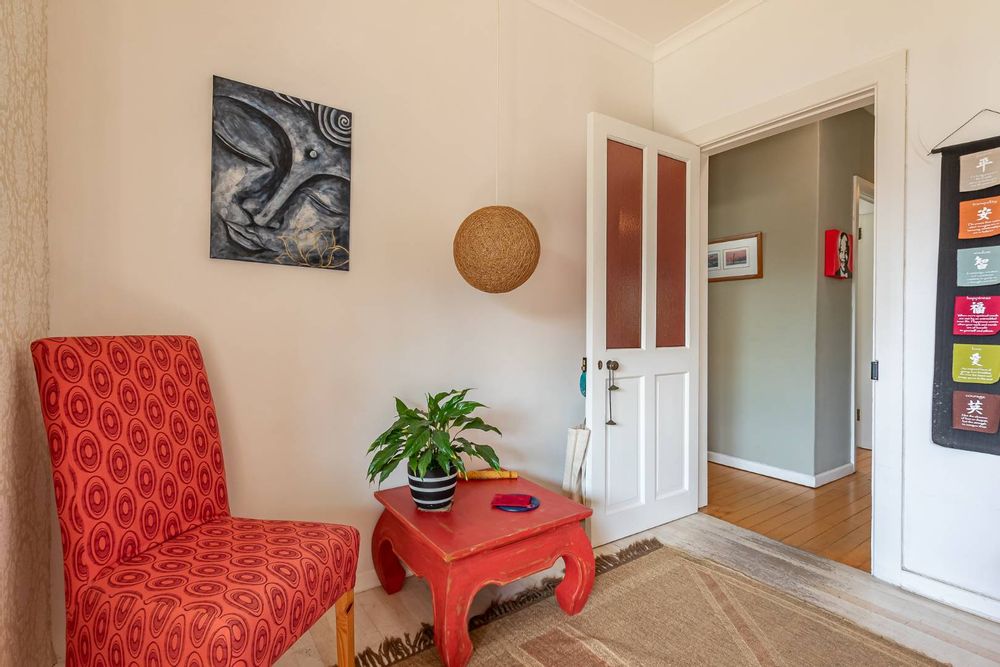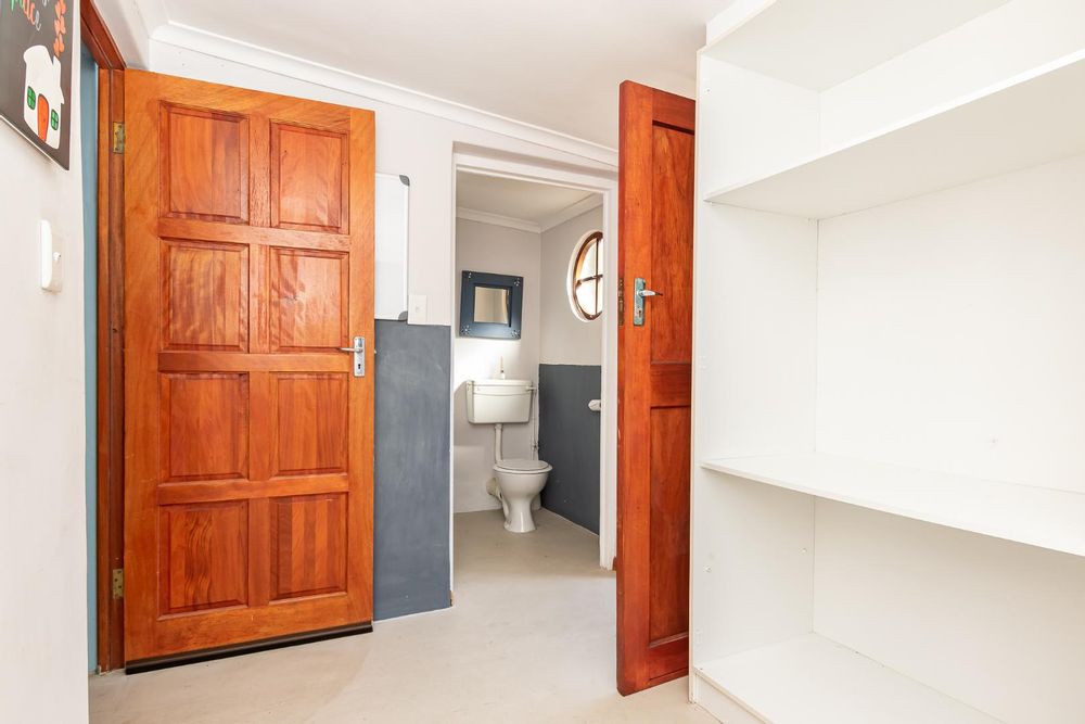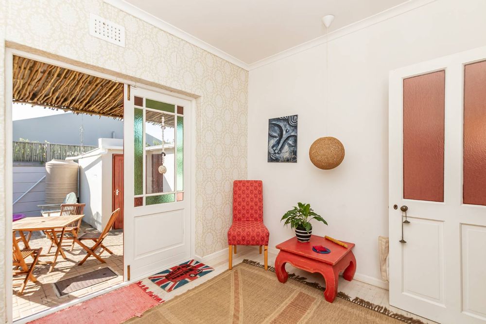 Upon entering the main house, you are enveloped in a sense of warmth and care that resonates throughout. The functional layout of the property features 3 bedrooms, each adorned with original wooden floors. Two of the bedrooms are equipped with built-in cupboards, while one is been utilized as an office/study that opens up to the back garden. The passage connecting the bedrooms and bathroom boasts linen cupboards for added storage convenience.