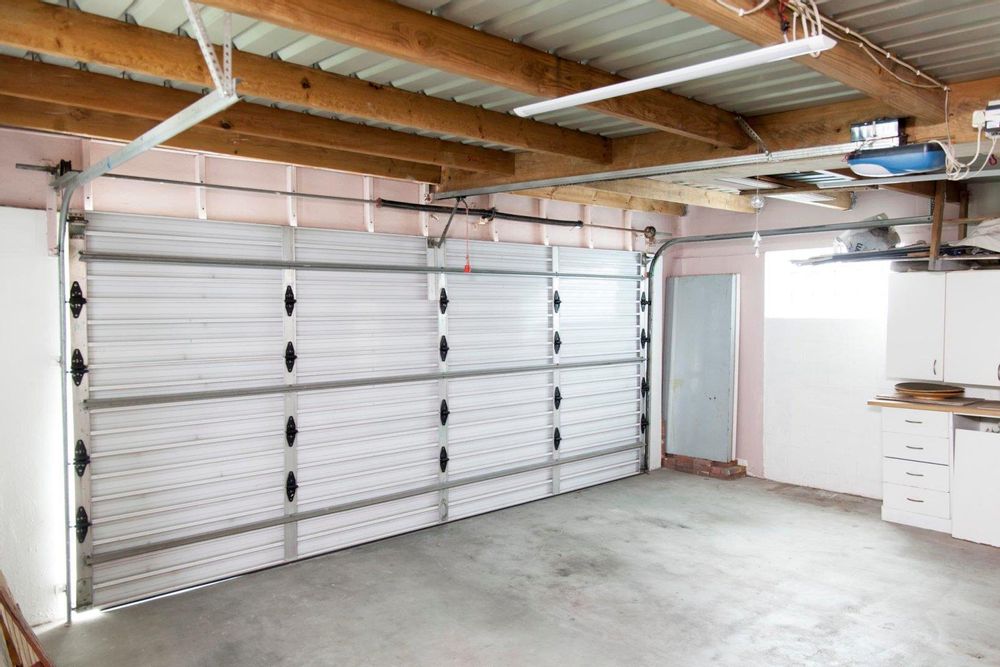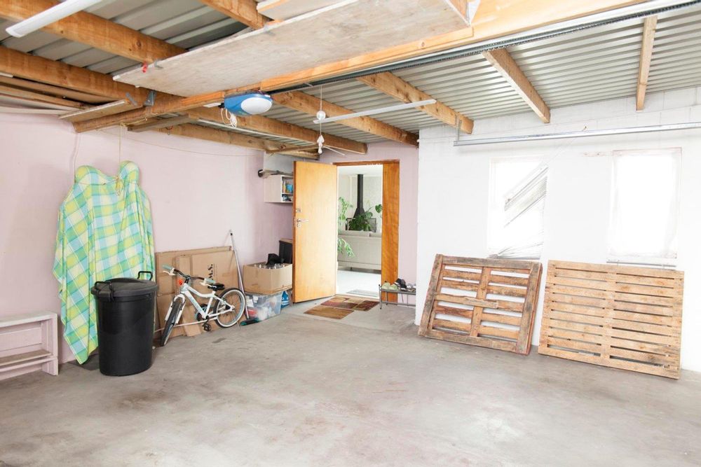 The automated double garage is larger than usual, with the rear end housing a water tank and a small storage area.