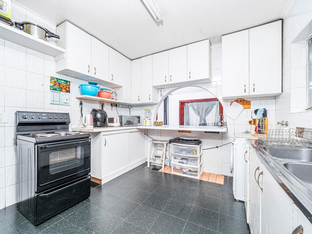 The dining area has an open nook to a kitchen that has ample cupboard space. This unique property has a separate bathroom with shower and guest loo.