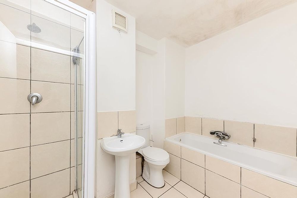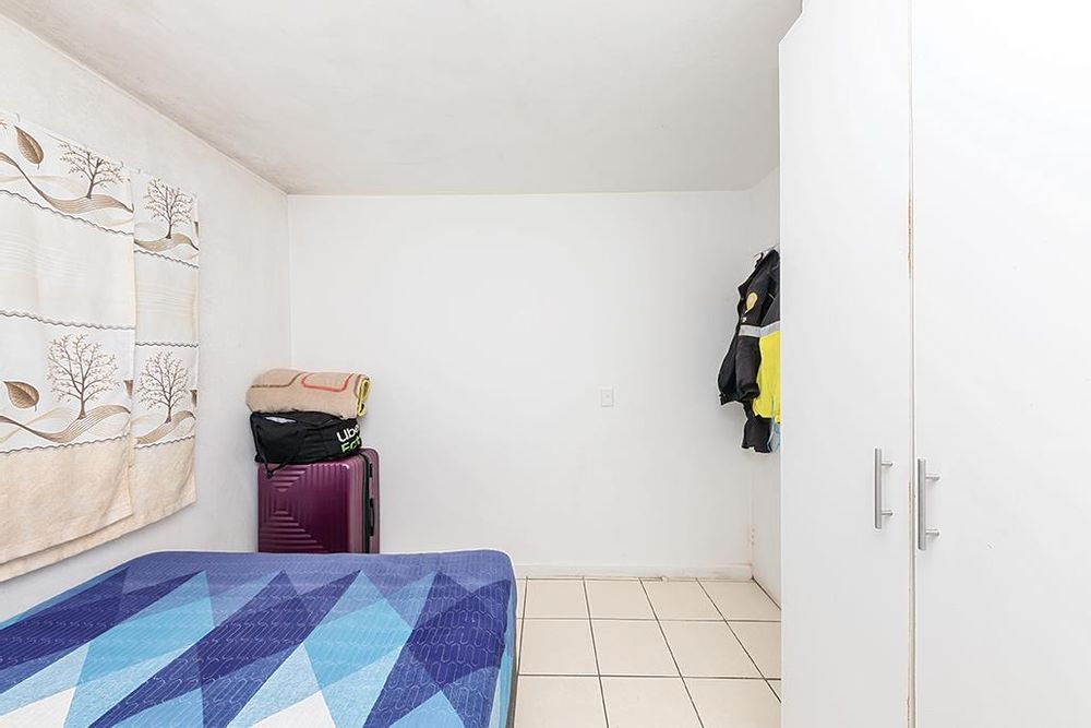 Unfurnished yet cozy, the apartment features a functional kitchen, a bathroom, and an inviting living area.