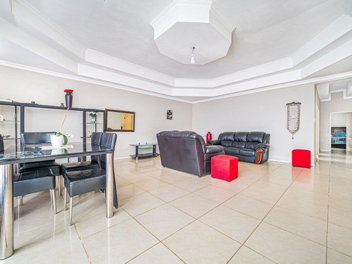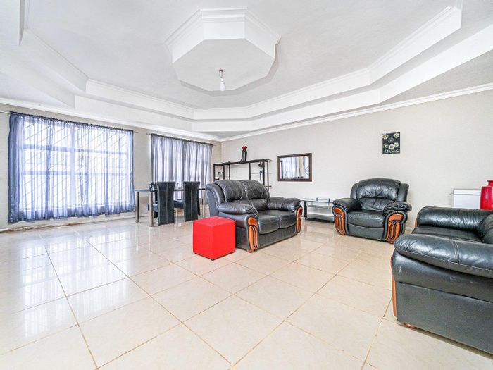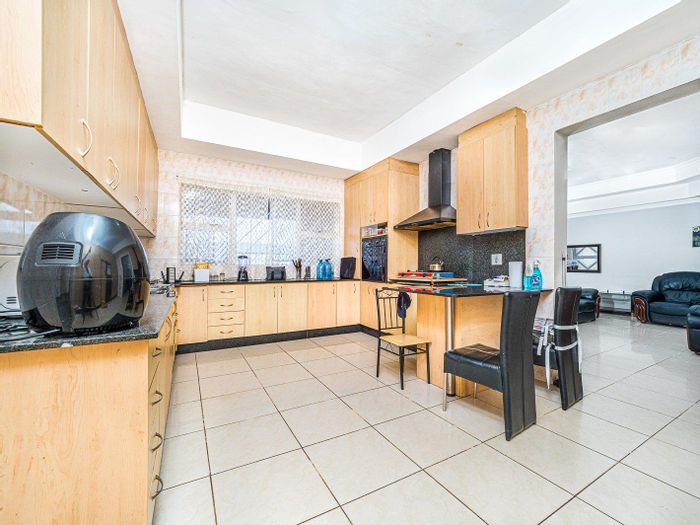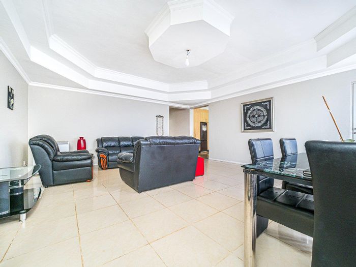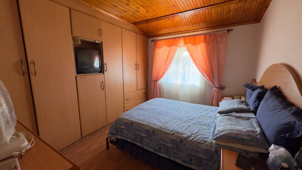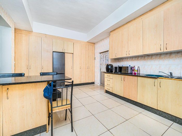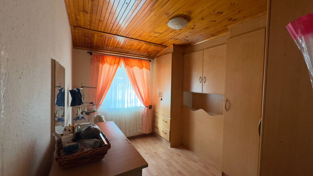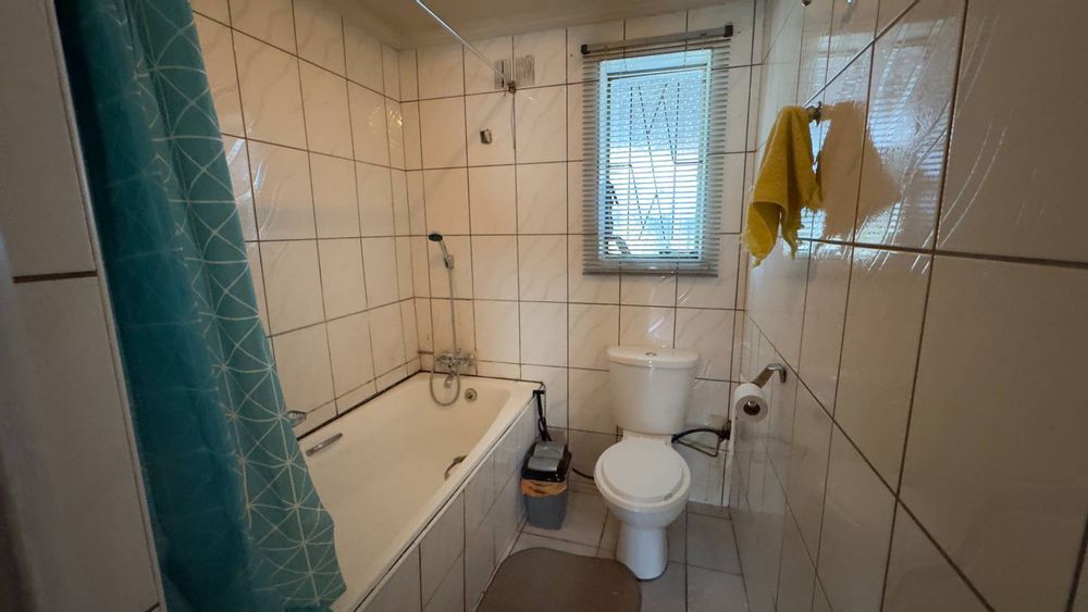 This property welcomes you with a warm dining and lounging area equipped with a fireplace and tiled flooring. All three bedrooms are well-spaced and include built-in cupboards in two of them. The fully tiled family bathroom consists of a bath and toilet.