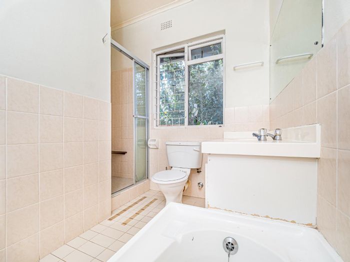 Top-floor apartment in Lansdowne, 2 bedrooms, R8500 rental income, secure complex, good schools nearby, asking price R865,000.