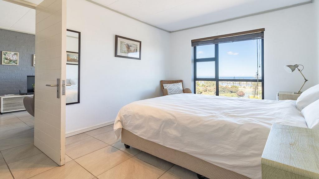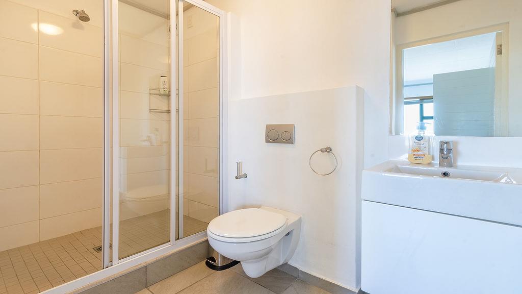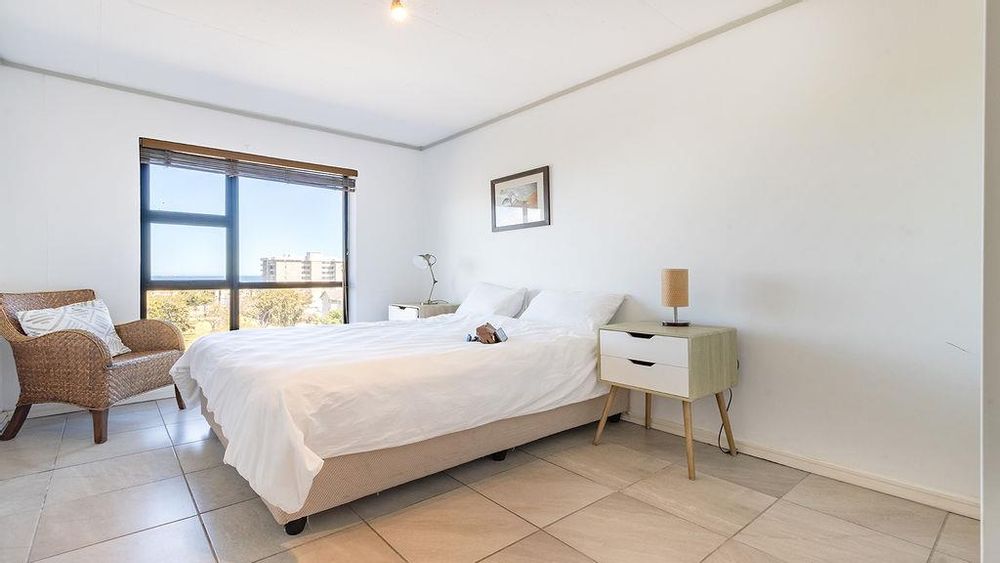 The main bedroom has an ocean view, tiled floors and built-in cupboards with an en-suite modern bathroom that features a large shower, basin and toilet.