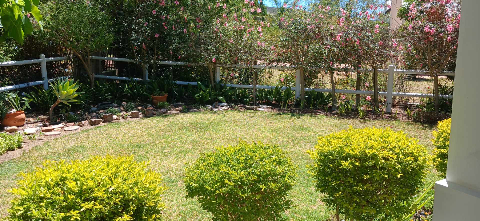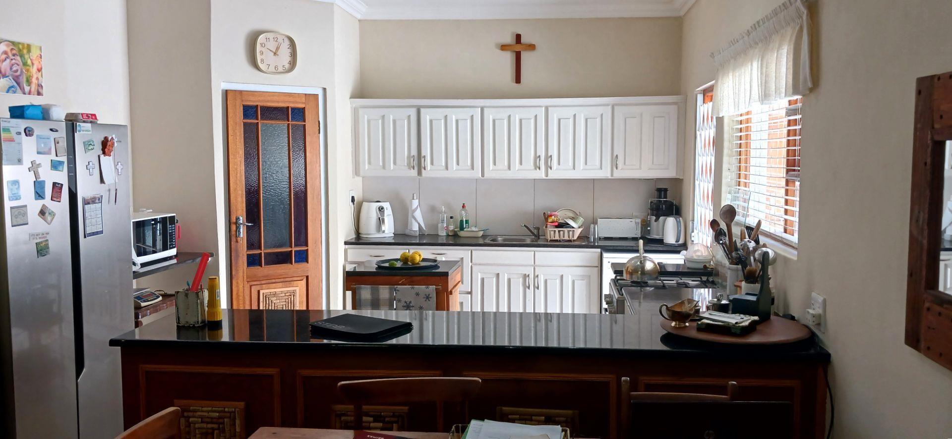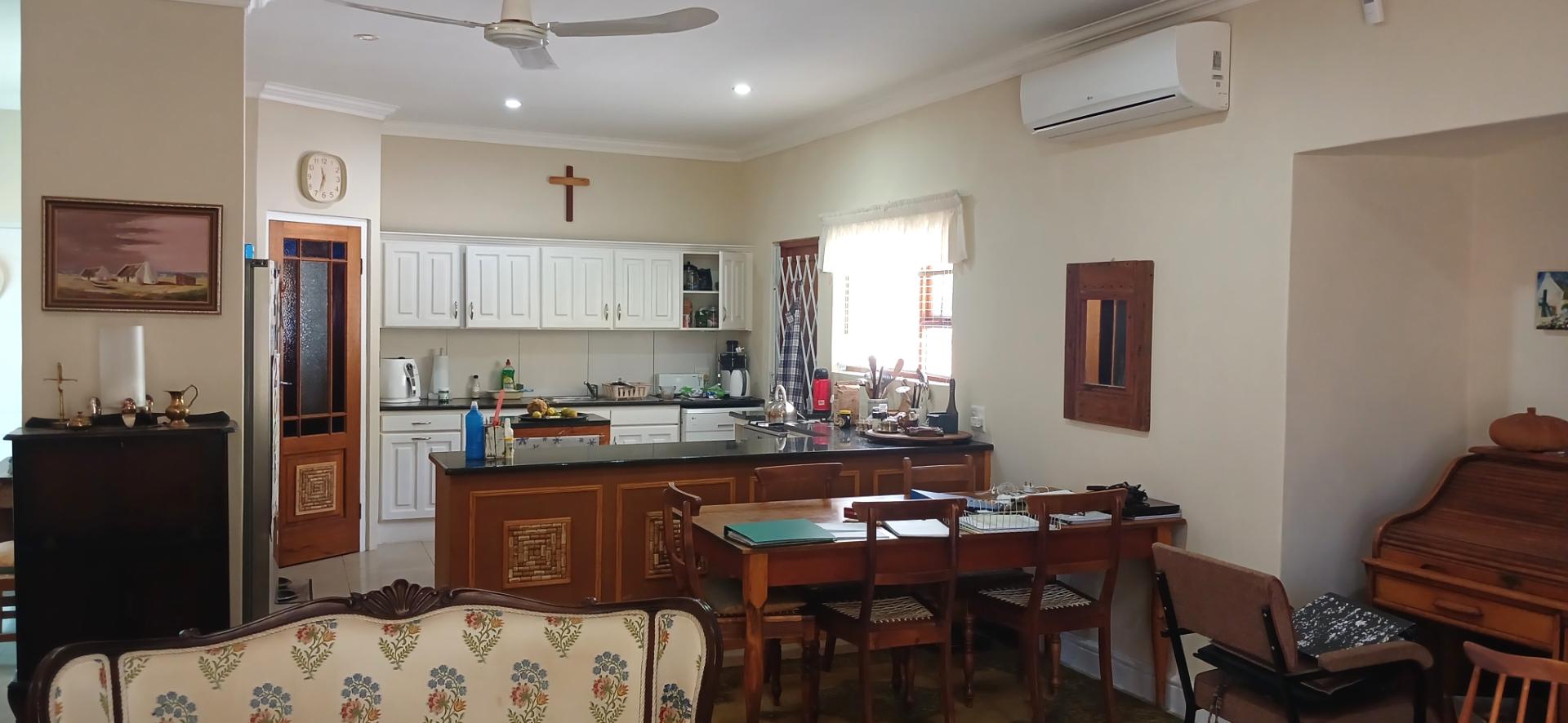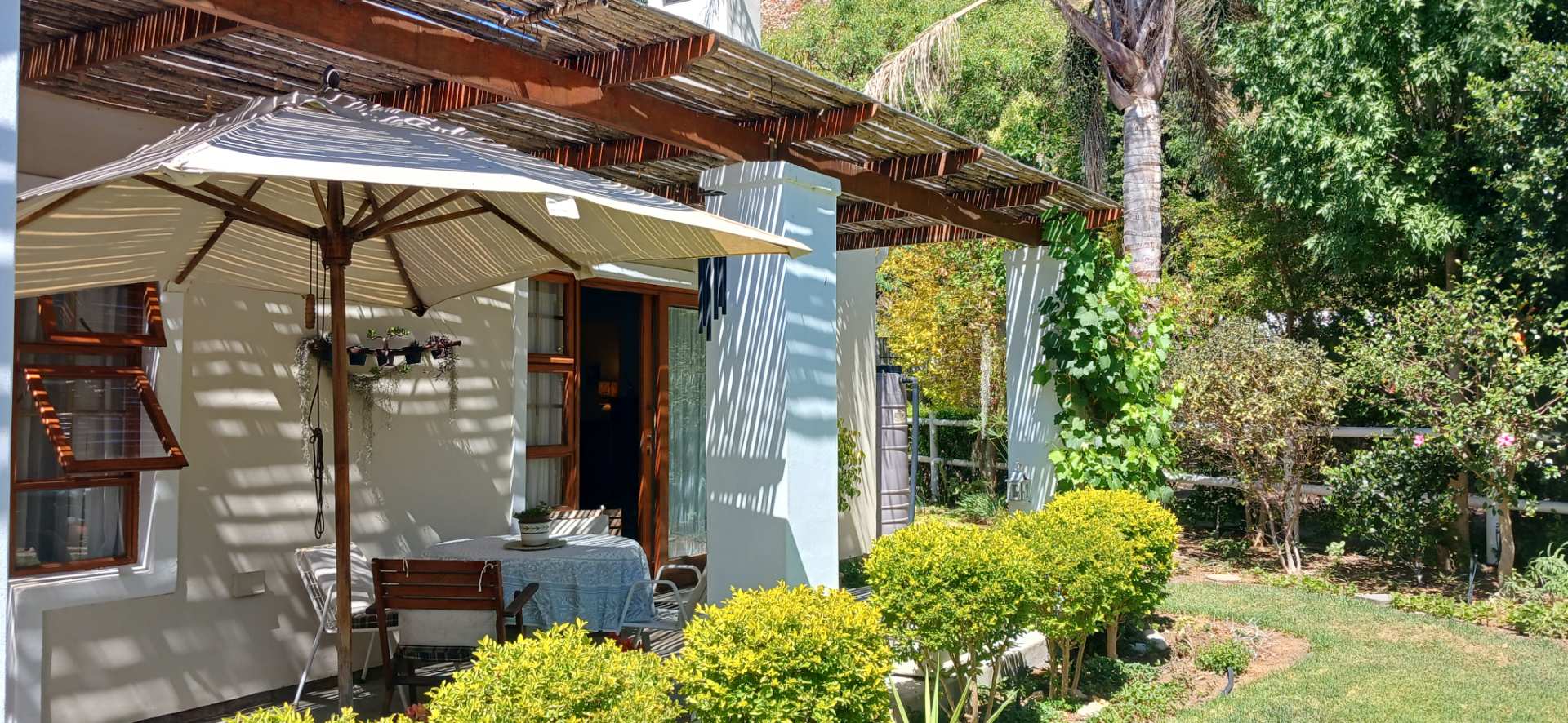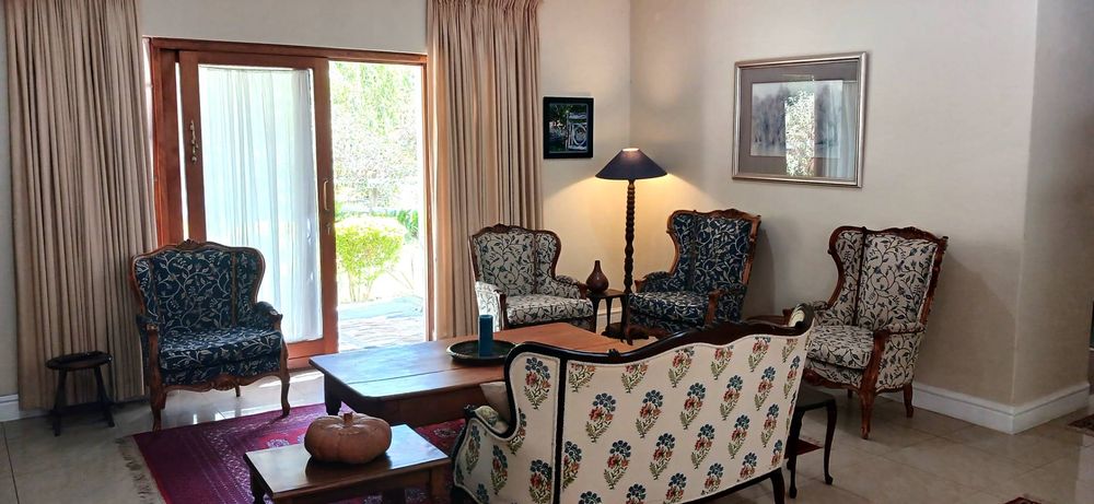 The kitchen is light and bright with plenty of cupboard space, plus a pantry. The lounge dining area is open plan with a fireplace for cozy winter evenings and an aircon for those hot summer days. Doors open to the patio, which is perfect for relaxing or entertaining, overlooking the beautifully maintained garden, while enjoying the tranquil surroundings.