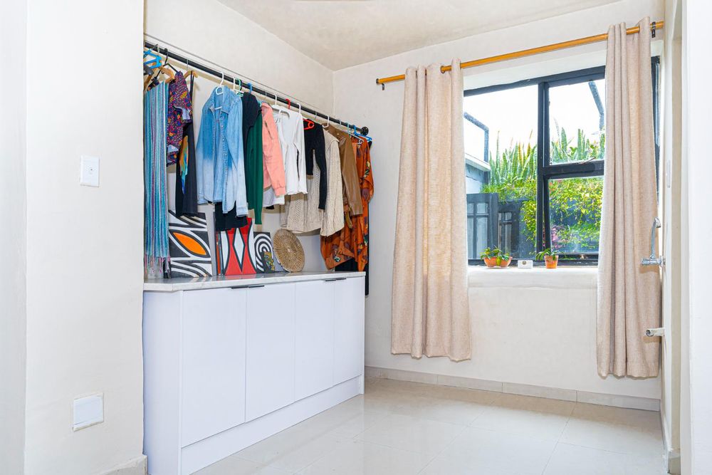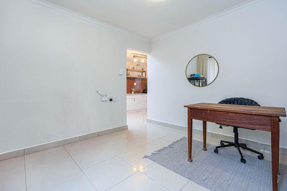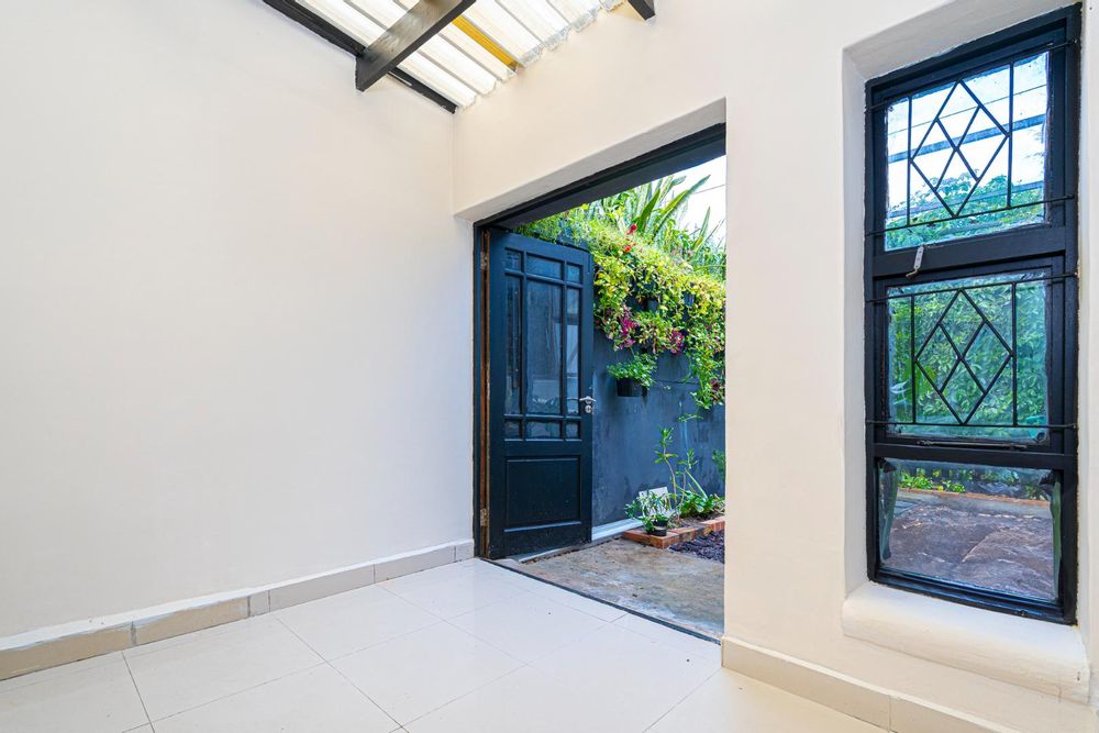 The final room presents an opportunity to create a 3rd single bedroom, second study or hobby space. This room is sunny and bright a wonderful as an artist studio and opens to the larger garden space. The garden is enhanced with vertical planting and has room for a braai and table seating.