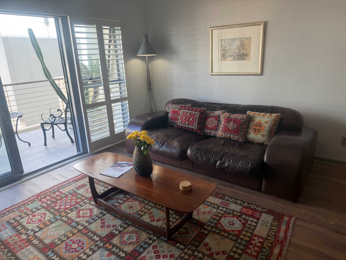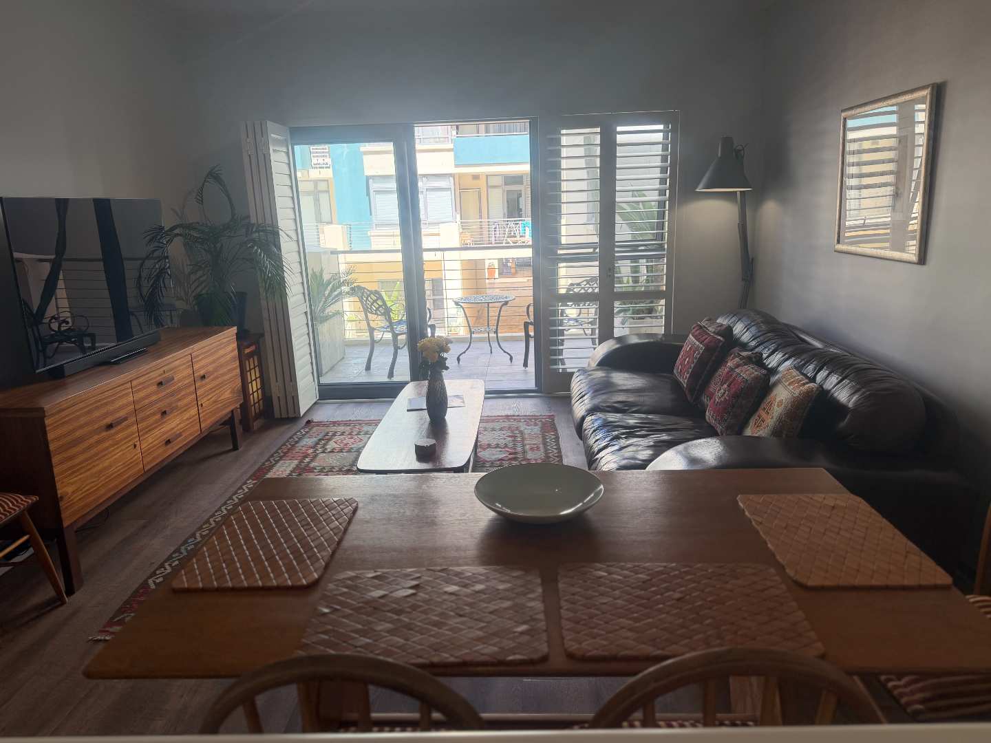 This sunning one-bedroom apartment literally across the road from the beach (surfers’ corner)