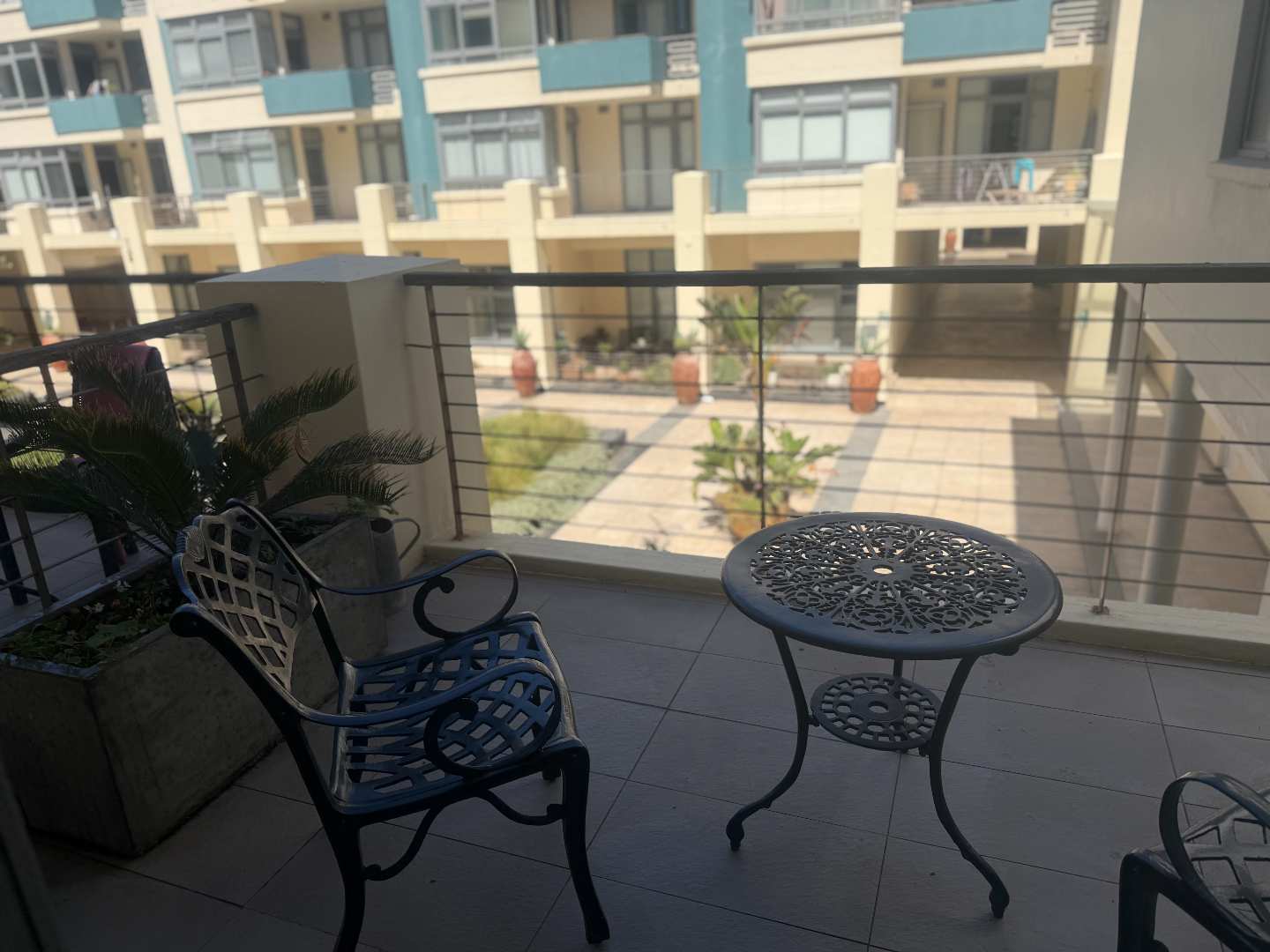 Open plan lounge/dining, doors leading to balcony with view of the courtyard.